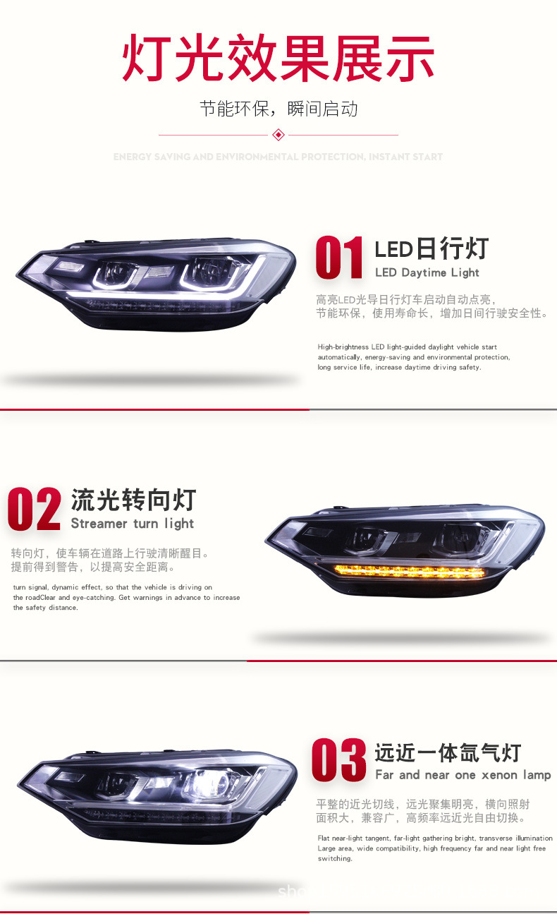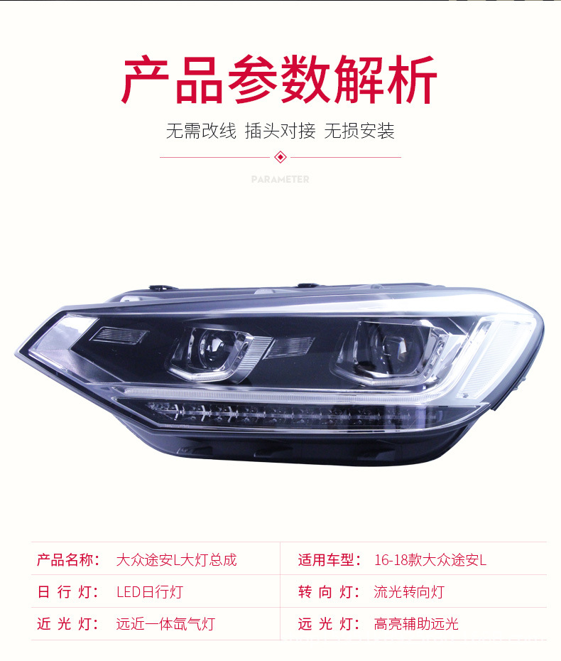 Modified LED Xenon Headlight Assembly Daytime Running Light Flowing Turn Signal for VW Touran L 2016-2019