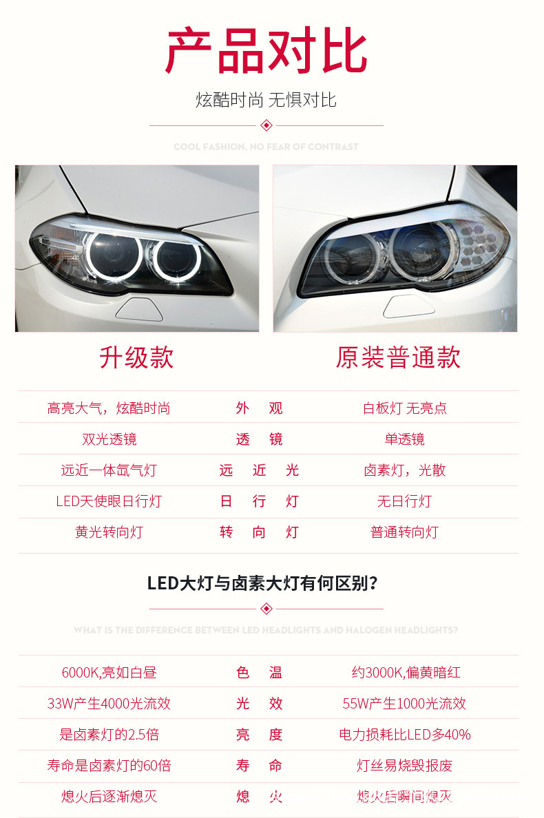 - Enhanced Aesthetics & Style: Elevate your vehicle’s appearance with a modernized headlight design. This upgrade enhances the overall look of your BMW 5 Series, offering a sleek and contemporary aesthetic.