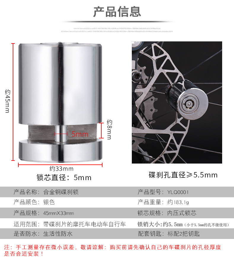 - Direct Fitment: A perfect security solution for mountain bikes, electric bikes, and motorcycles equipped with disc brakes, as shown in the image.