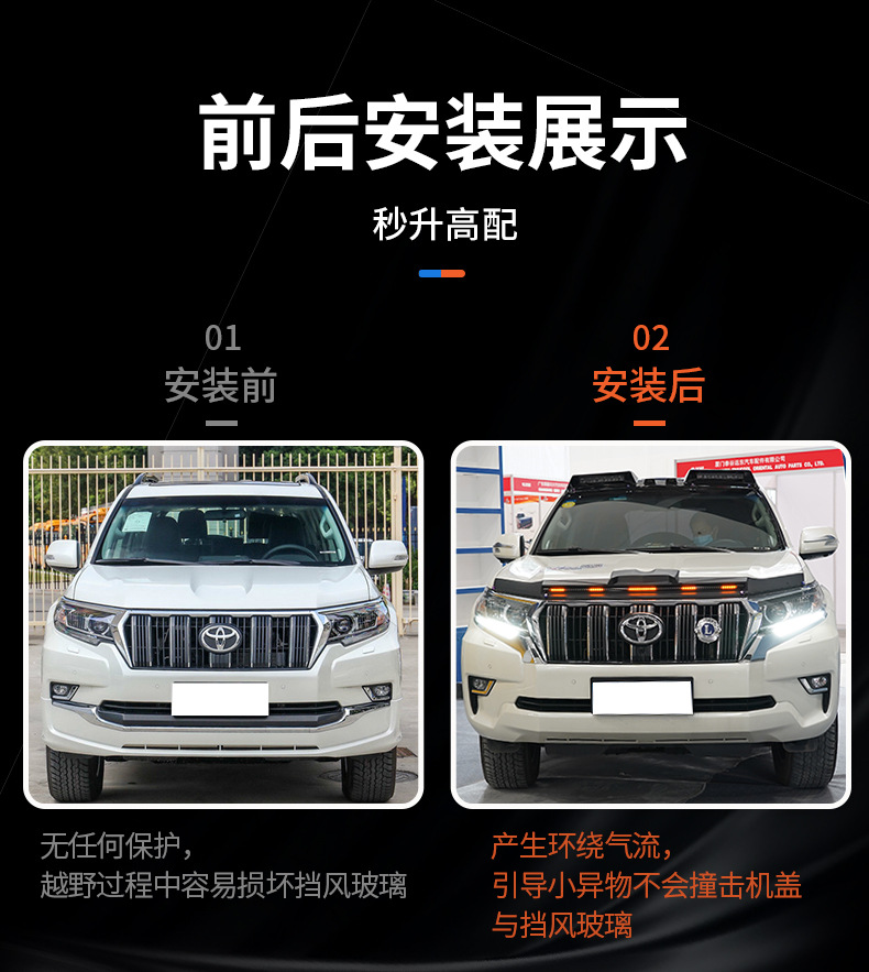 - Direct Fitment: A perfect replacement for the front hood. Compatible with Toyota Prado FJ150 (2010-2021), FJ120 (2003-2009), FJ90 (1998-2003).