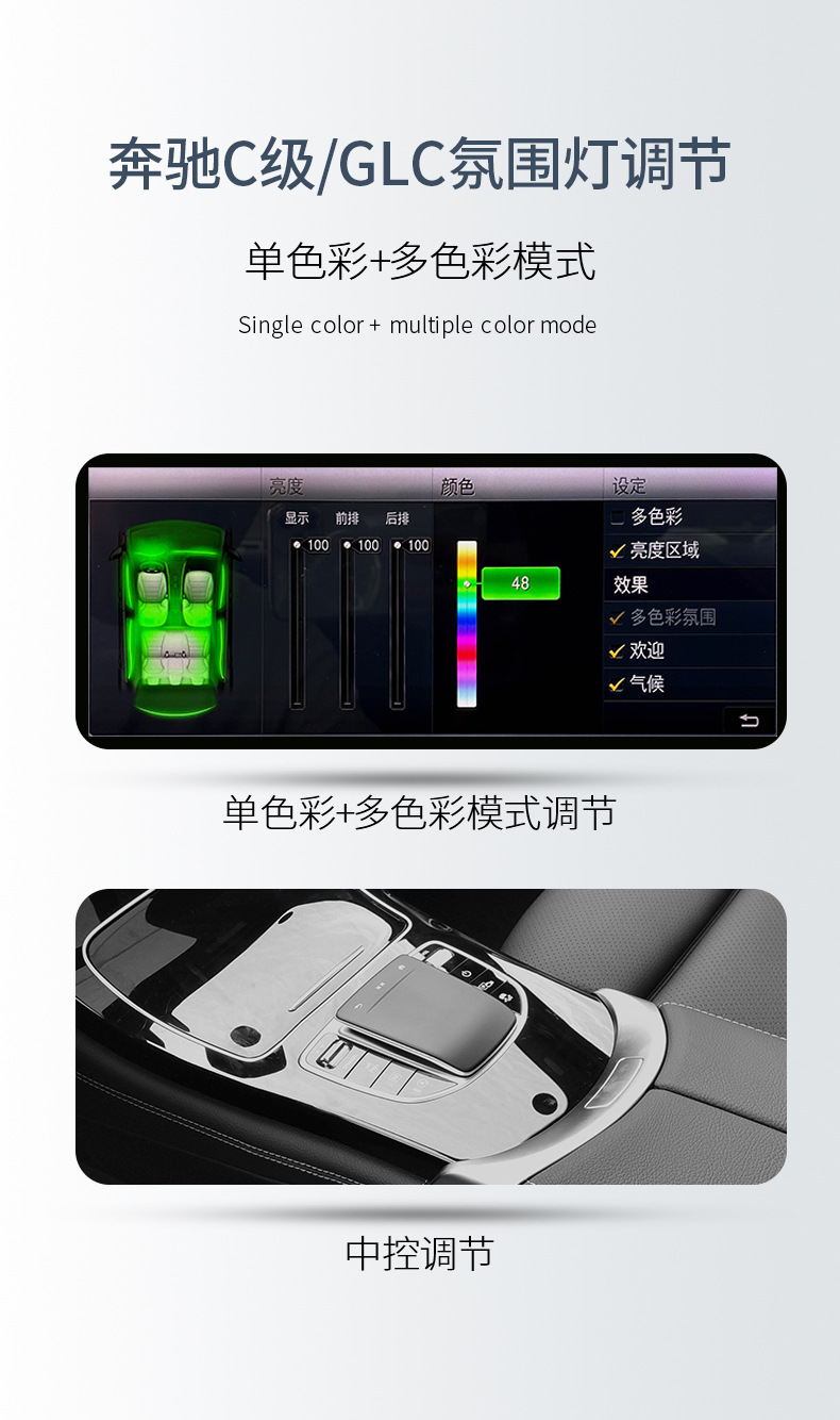 - Multi-Color Ambient Lighting: Features customizable 3-color, 12-color, or 64-color options to match your mood or existing interior lighting, enhancing the luxury and ambiance of your car’s cabin.