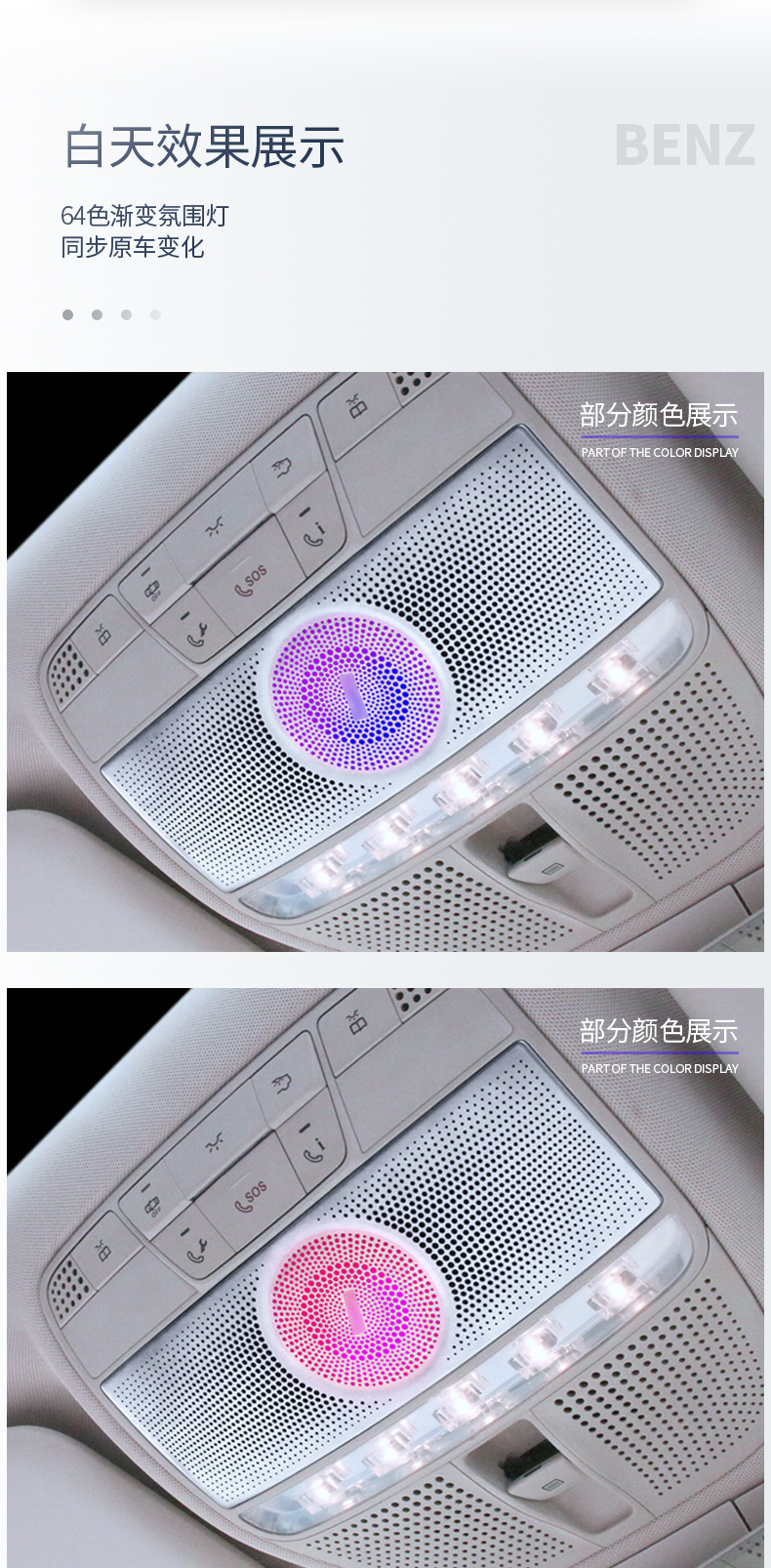 Multi-Color Ambient Light Eyeglass Holder for Mercedes-Benz W205 C-Class X253 GLC-Class Interior Upgrade
