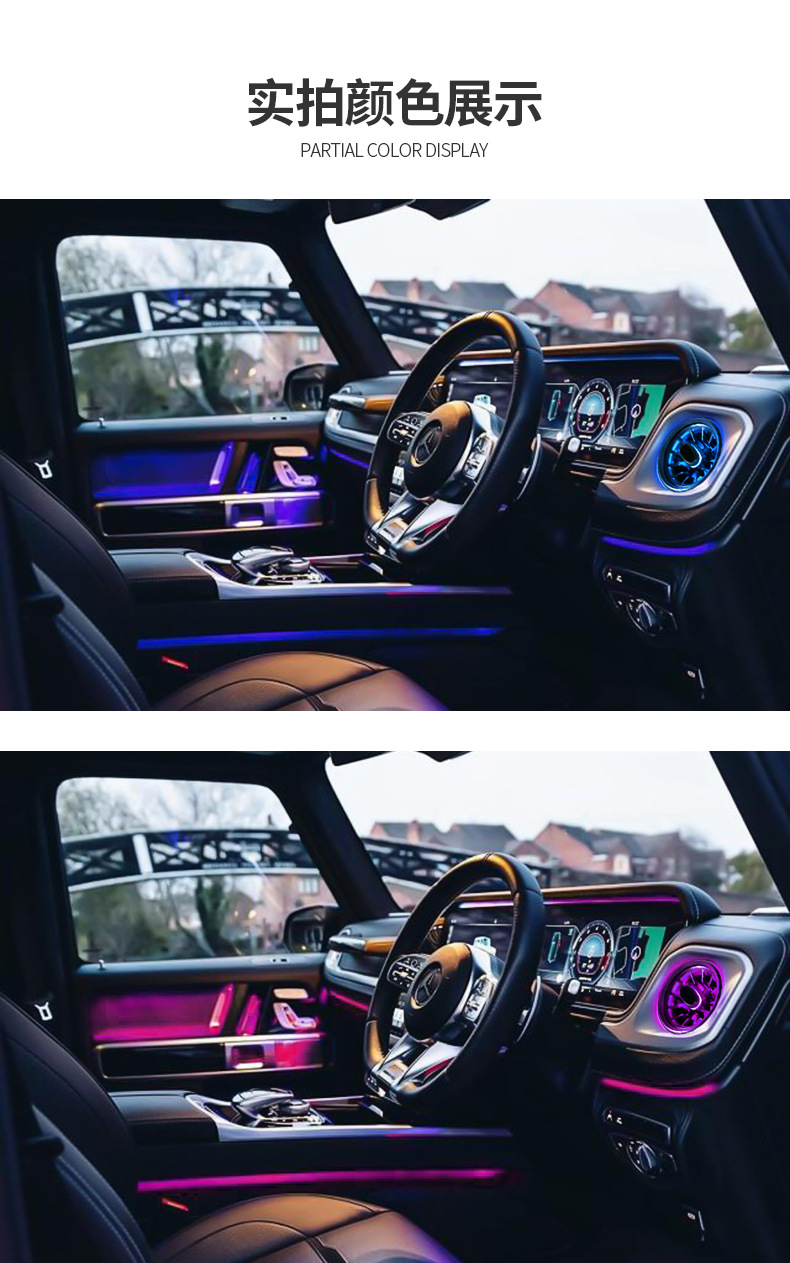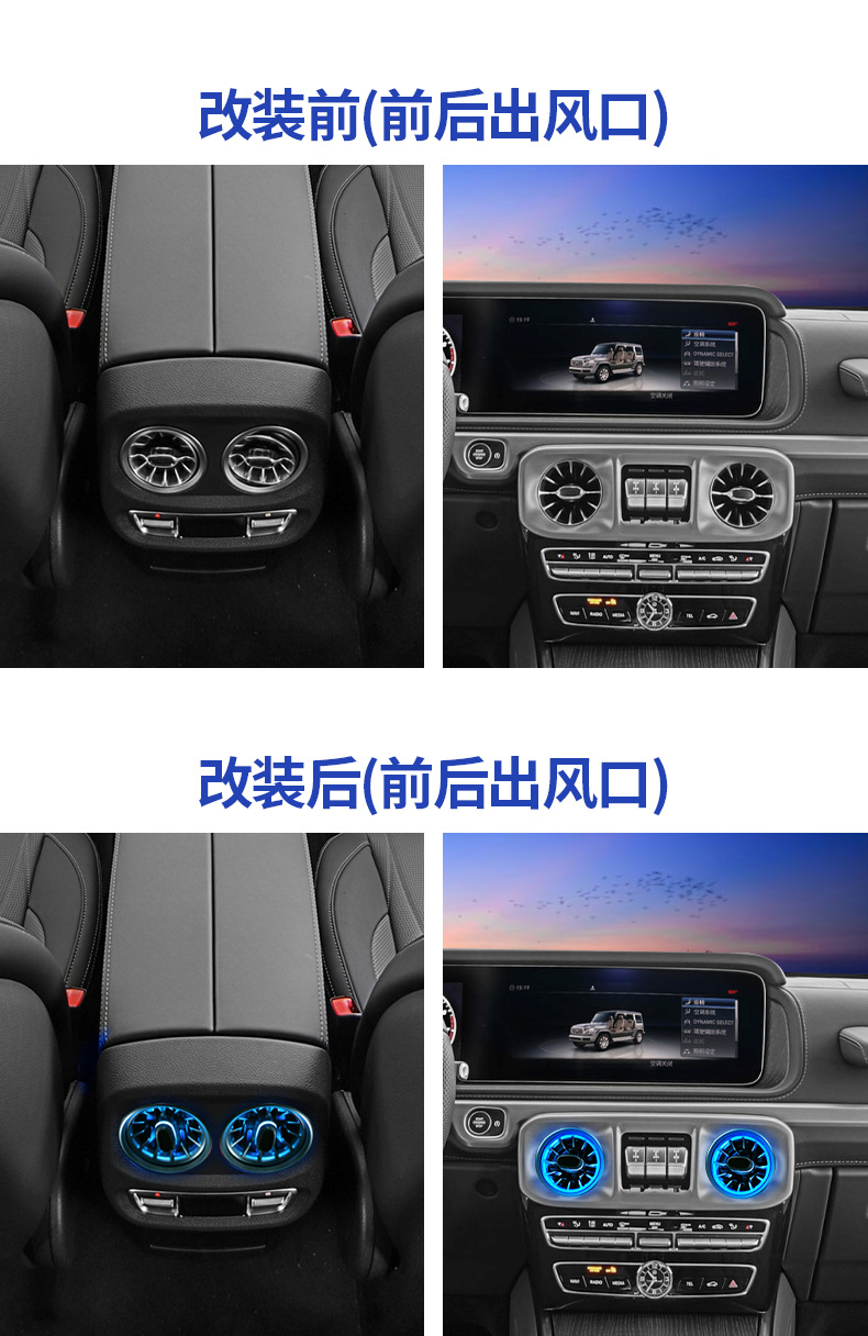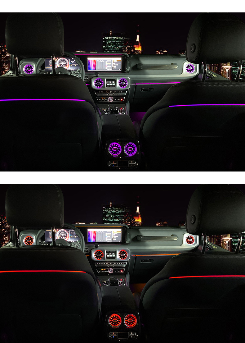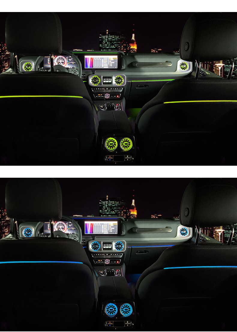 - Package Contents: Includes a complete set of G-Class W464 front and rear glow turbine air vents with built-in multi-color ambient lighting, offering a comprehensive interior upgrade.
