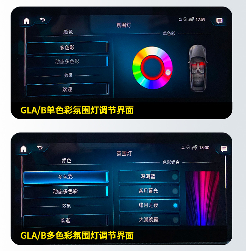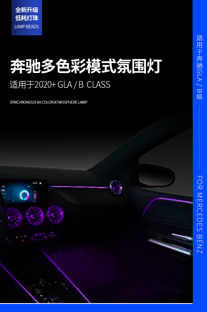 Multi-Color Mode Interior Ambient Car Light Kit for Mercedes-Benz GLA/B-Class