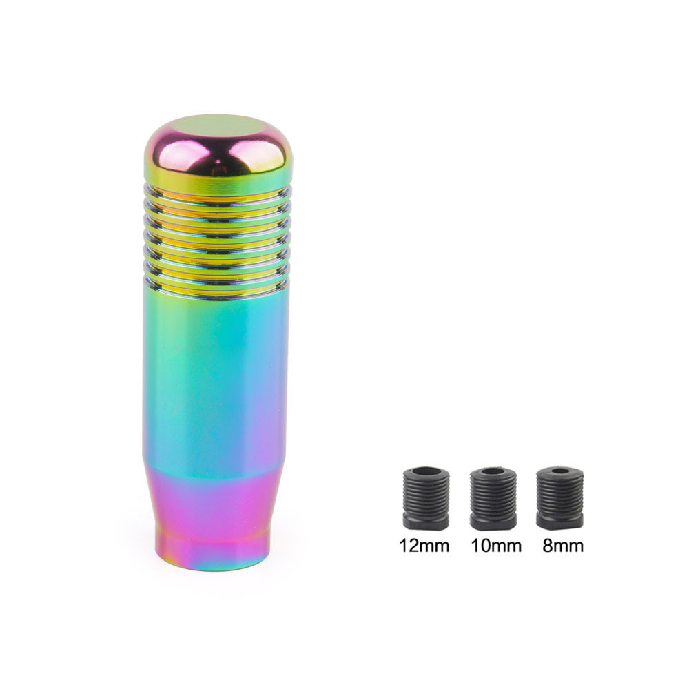 Aluminum Knurled Manual Shift Knob with Anti-Slip & Rainbow Blue Coating for Universal Cars