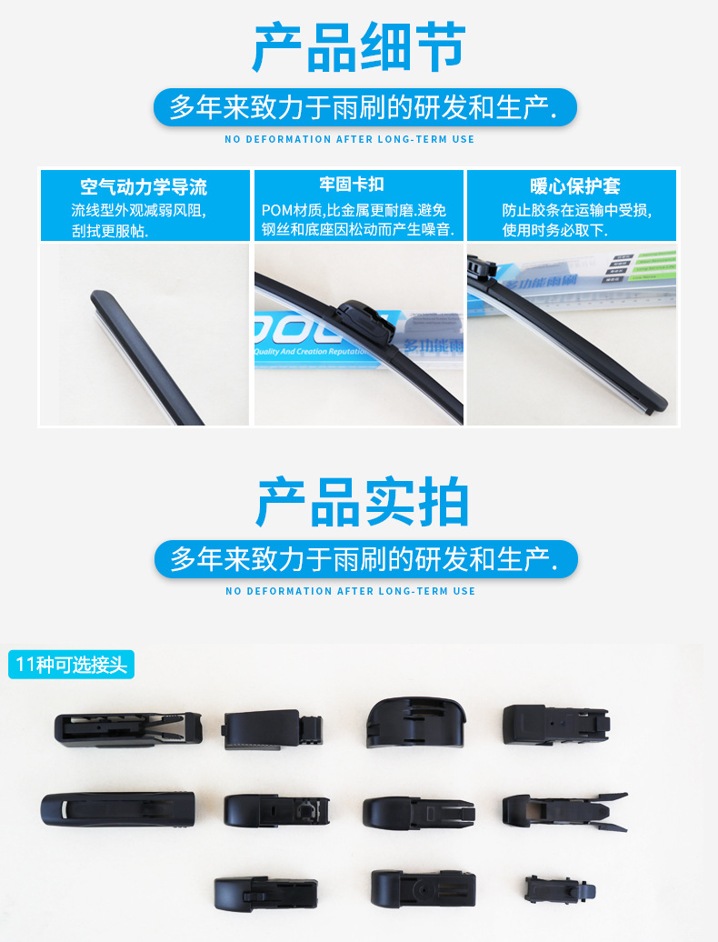 Multi-Function All-Season Windshield Wiper Blade for Various Car Models with Interchangeable Connectors