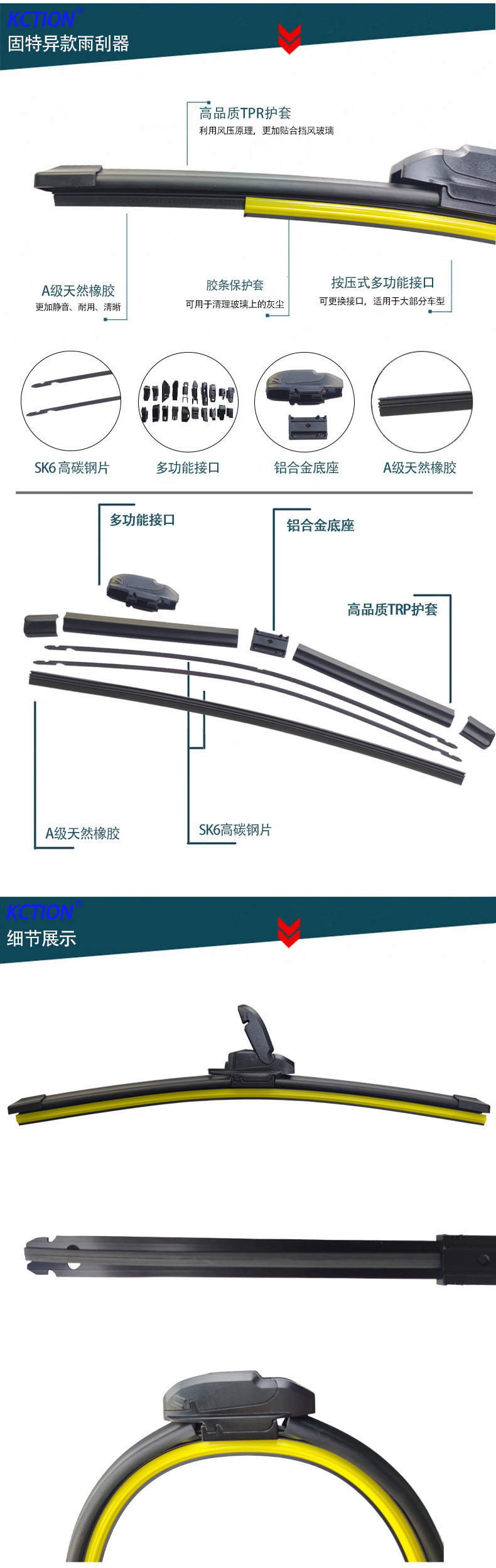 Muticolor Wiper Blade Frameless Multifunctional OEM Interface Double-Layer Rubber Strip Windshield Wiper for Universal Vehicles KCTION K-662