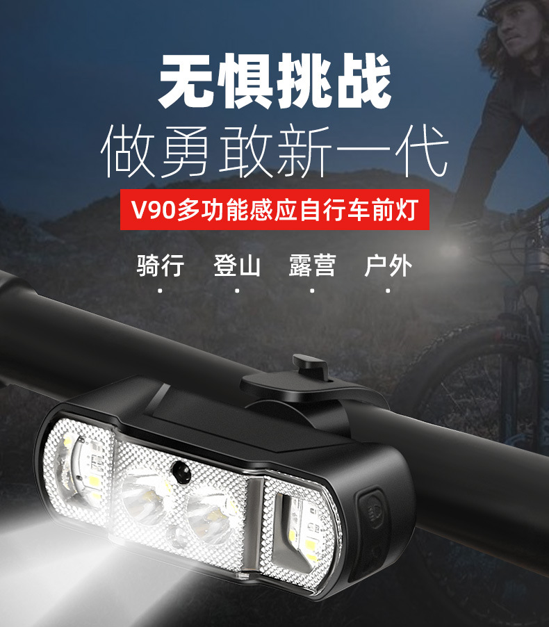 Multi-Function Bicycle Headlight V90 Rechargeable Bike Front Light with Hand Wave Induction for Mountain and Road Cycling