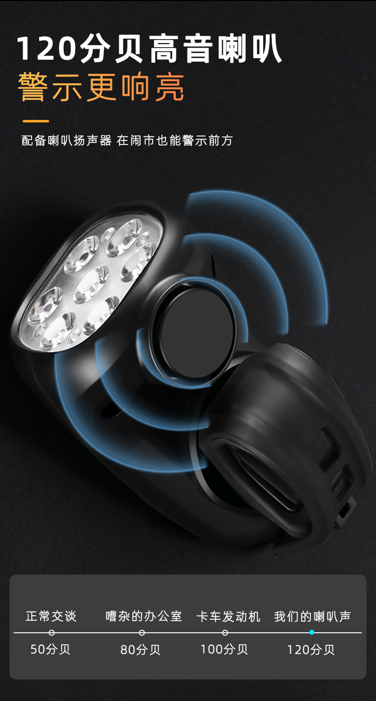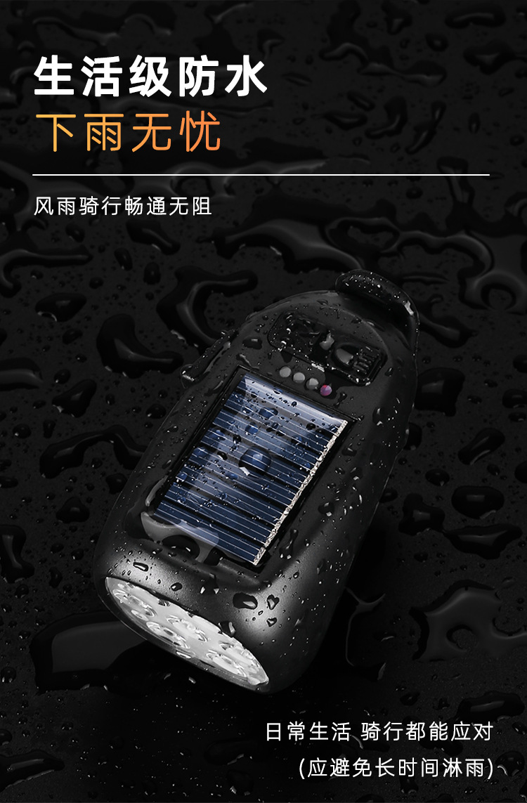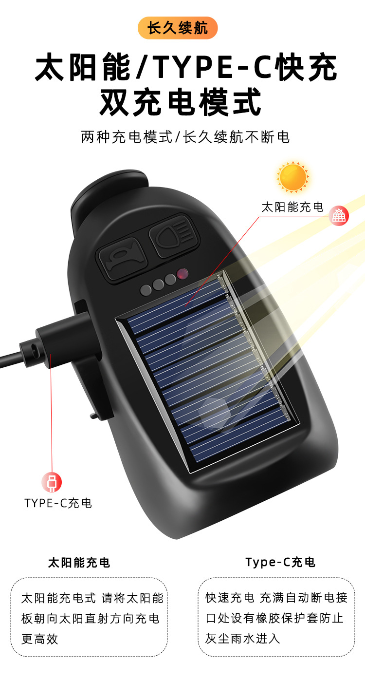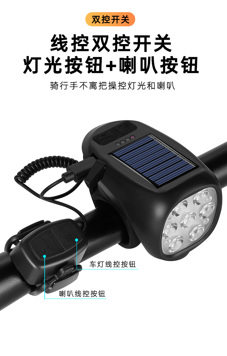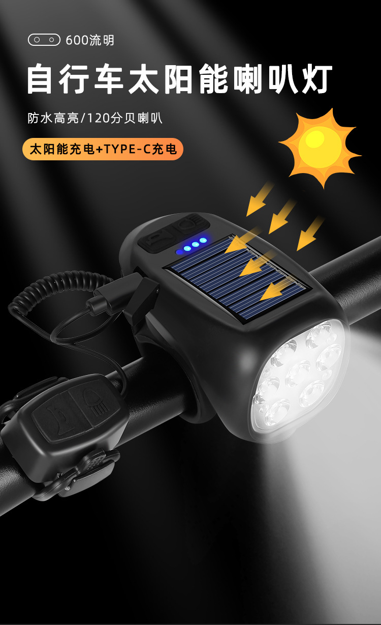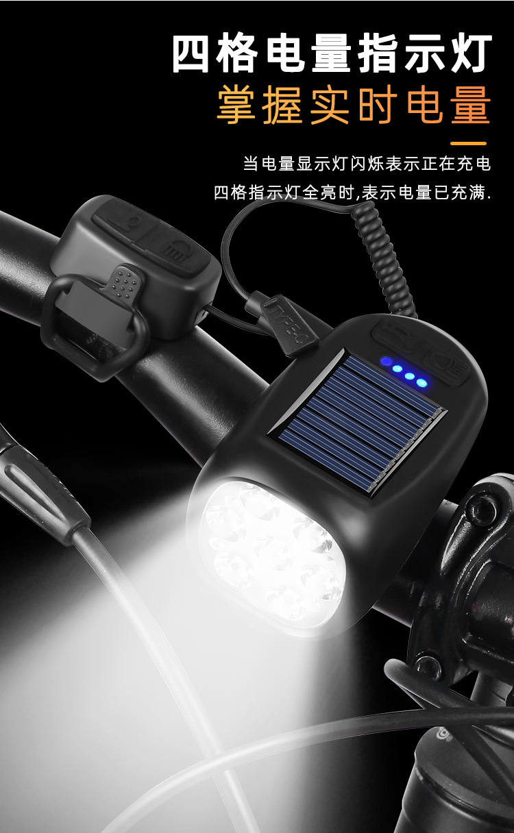 Multi-Function Bicycle Headlight for Night Riding – Solar & USB-C Rechargeable, with Horn and Taillight