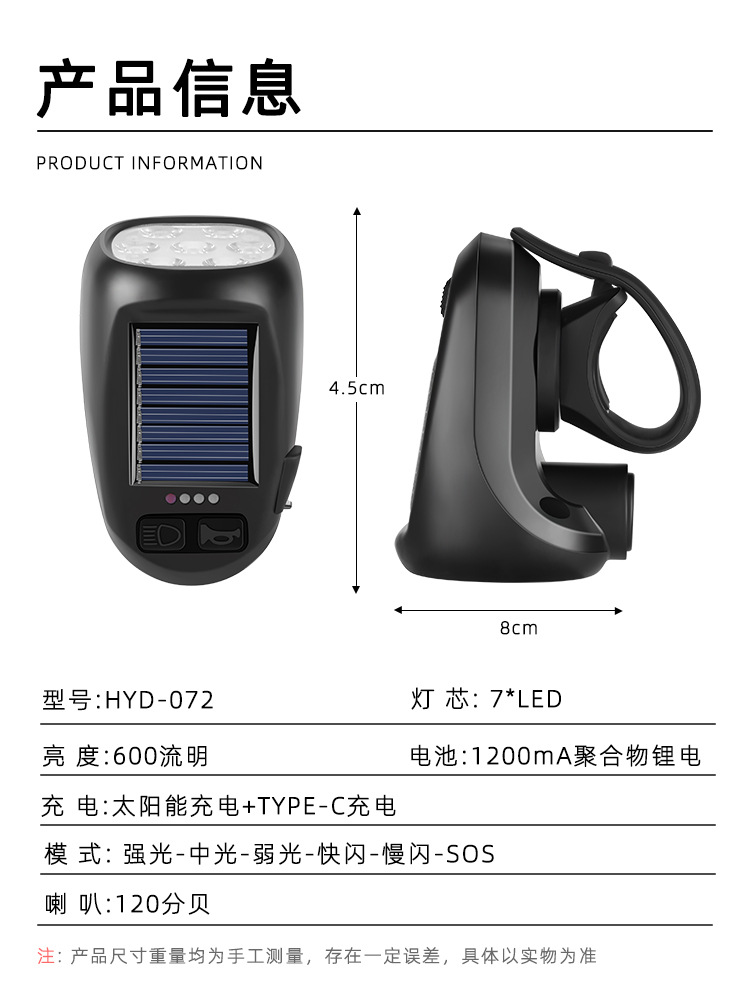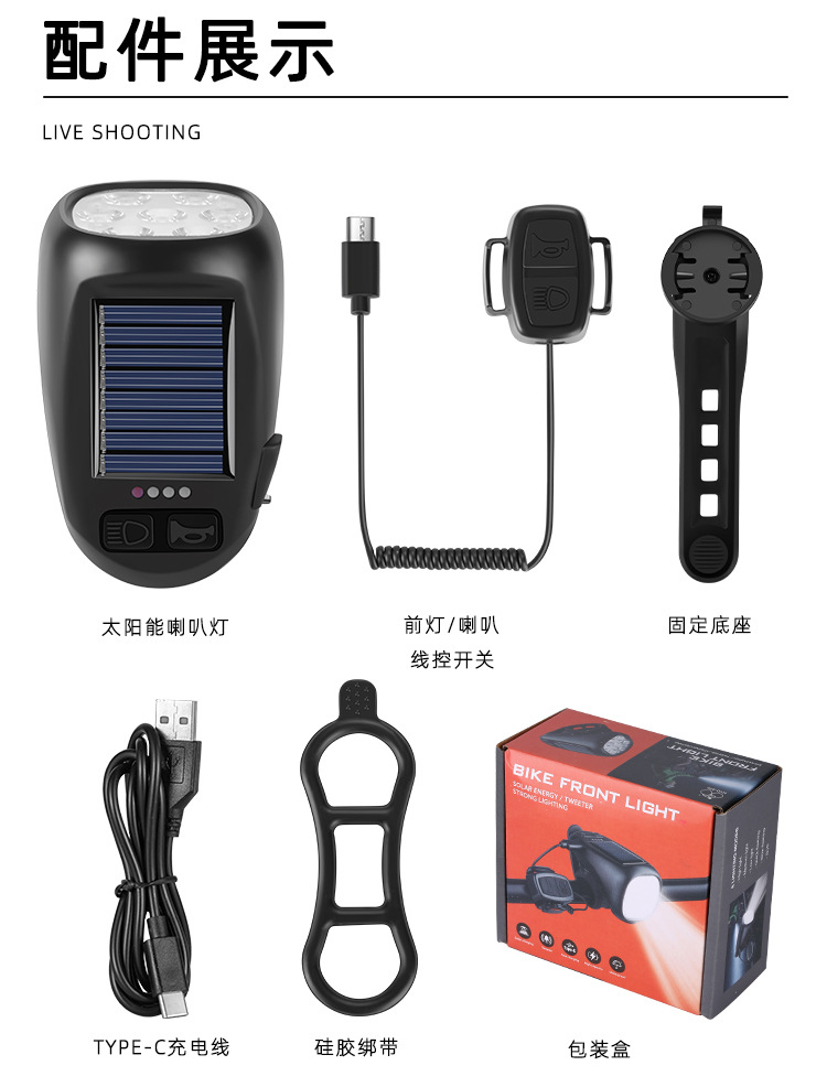 - Complete Package: Includes 1x solar and USB-C rechargeable bicycle headlight with integrated horn and taillight, exact as pictured. Please verify suitability for your bike before purchasing.