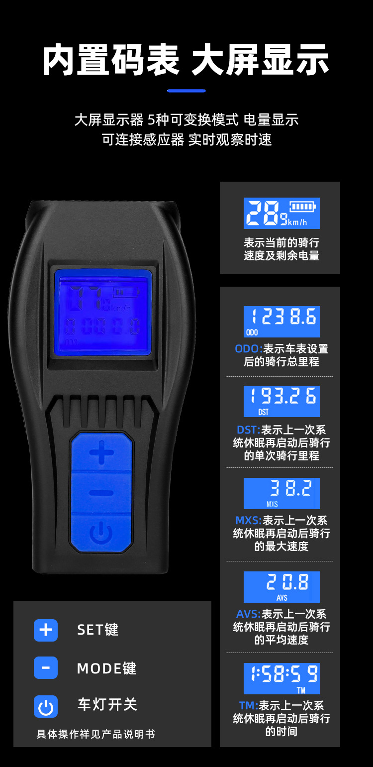 - Direct Fitment: A perfect multi-functional accessory for mountain bikes, integrating front light, speedometer, and horn.