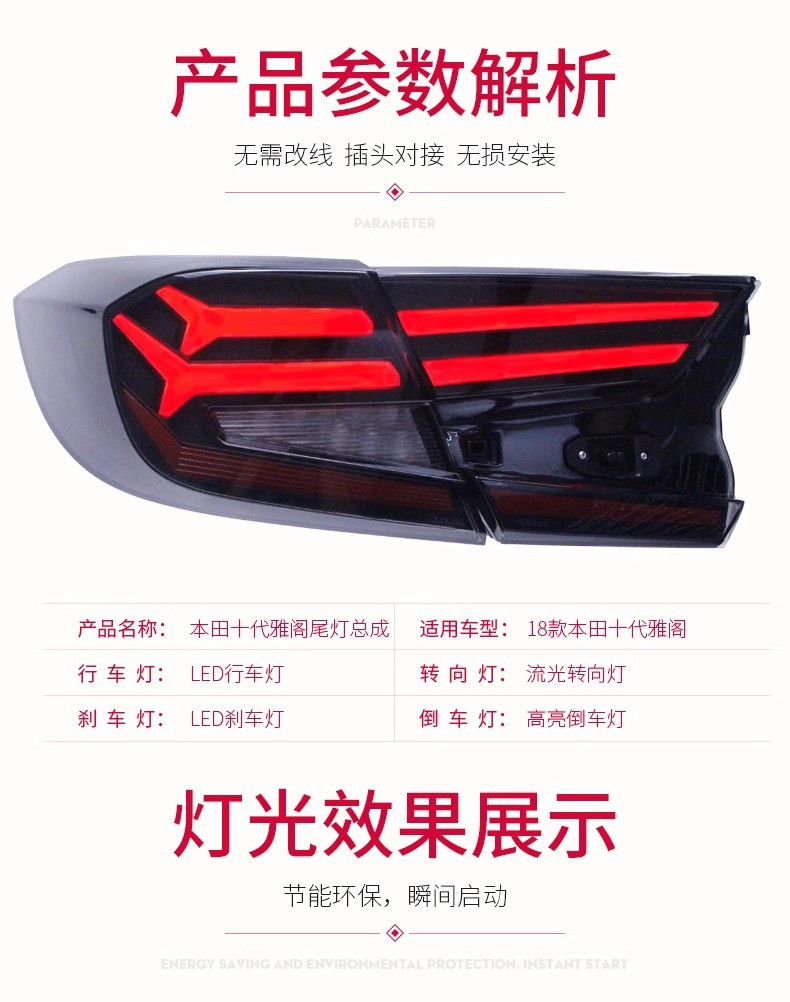 - Precise Fitment: Designed specifically for Honda Accord 10th Generation models, ensuring a perfect, seamless replacement for your original tail light assembly.