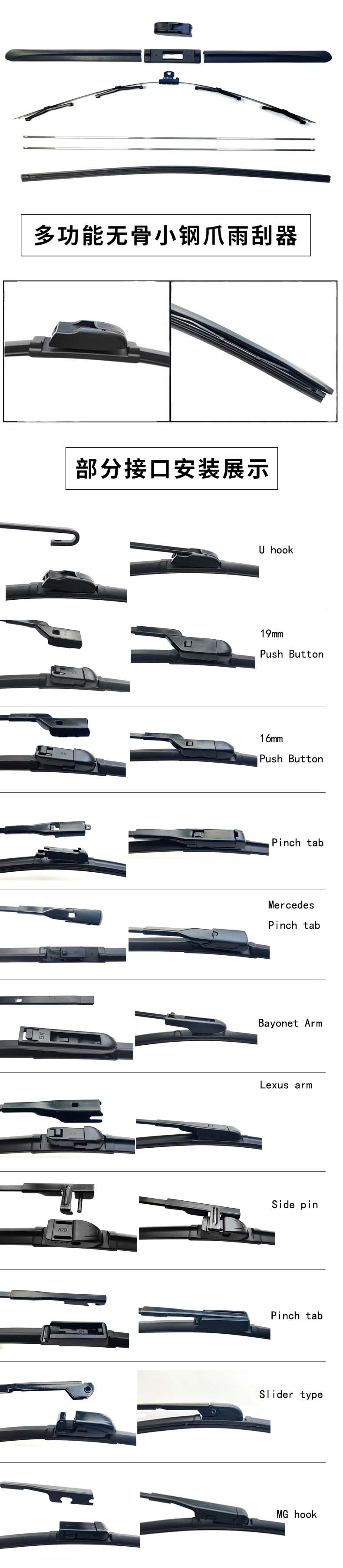 - Complete Package: Includes 1x multi-function frameless wiper blade and multiple adapters, exactly as pictured. Please verify fitment details before purchasing.