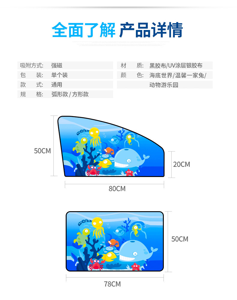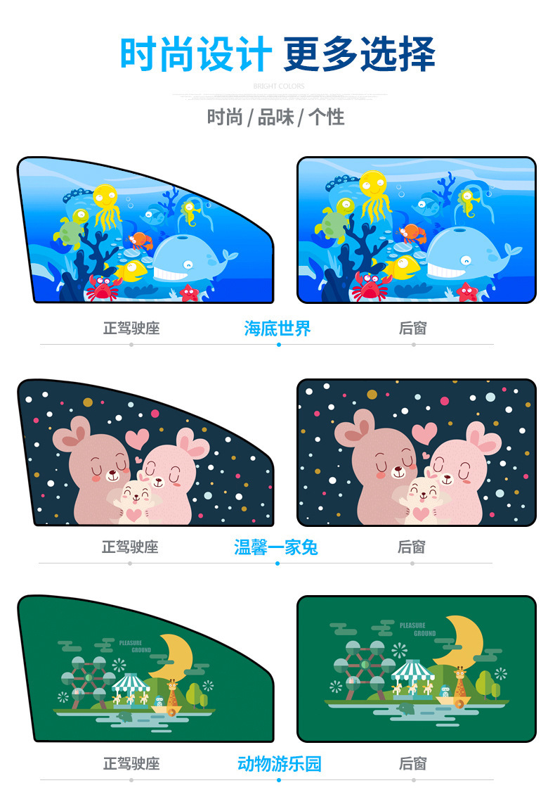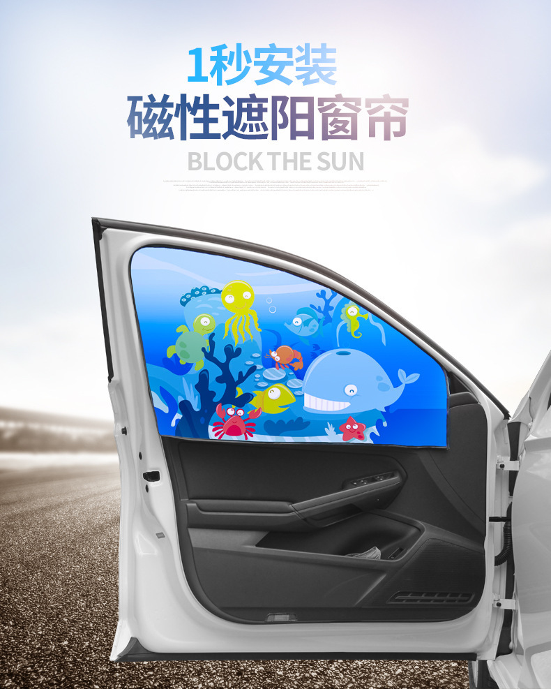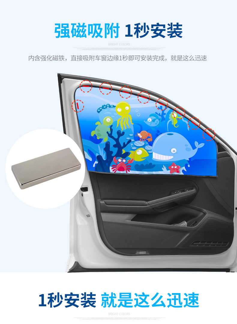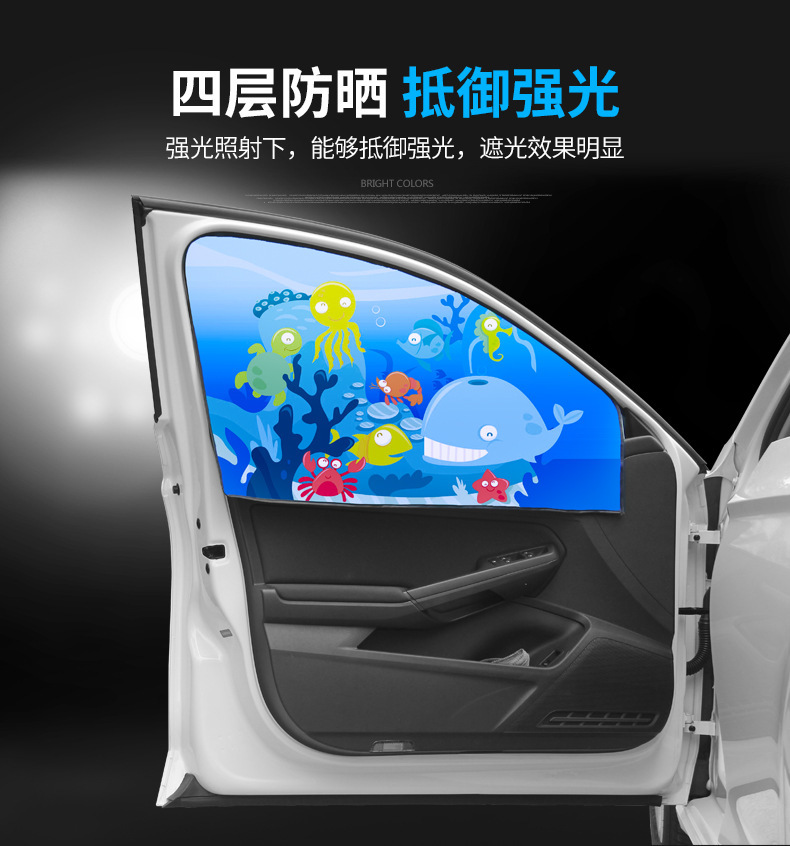 Multi-Pattern Double Layer UV Protection Cartoon Magnetic Car Window Sun Shade for Universal Vehicles