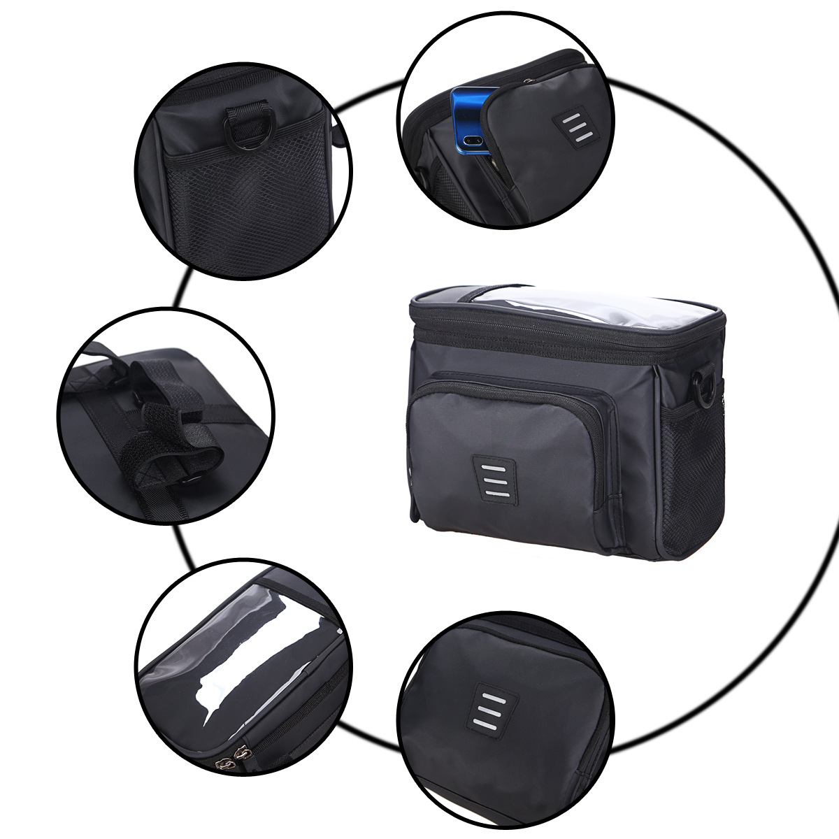 Multi-functional Bicycle Handlebar Bag with Clear Phone Pouch & Shoulder Strap for Mountain Bikes, Folding Bikes & Electric Scooters
