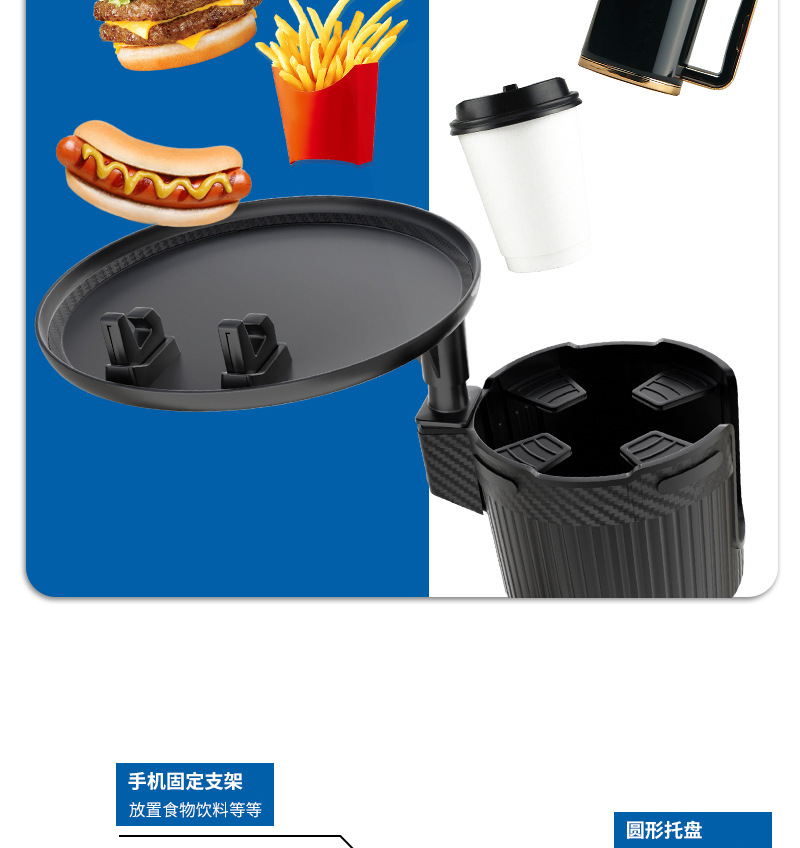 - Universal Fitment: Designed as a versatile multi-functional car cup holder tray, suitable for most vehicles, providing convenient storage for phones, drinks, and food items during travel.