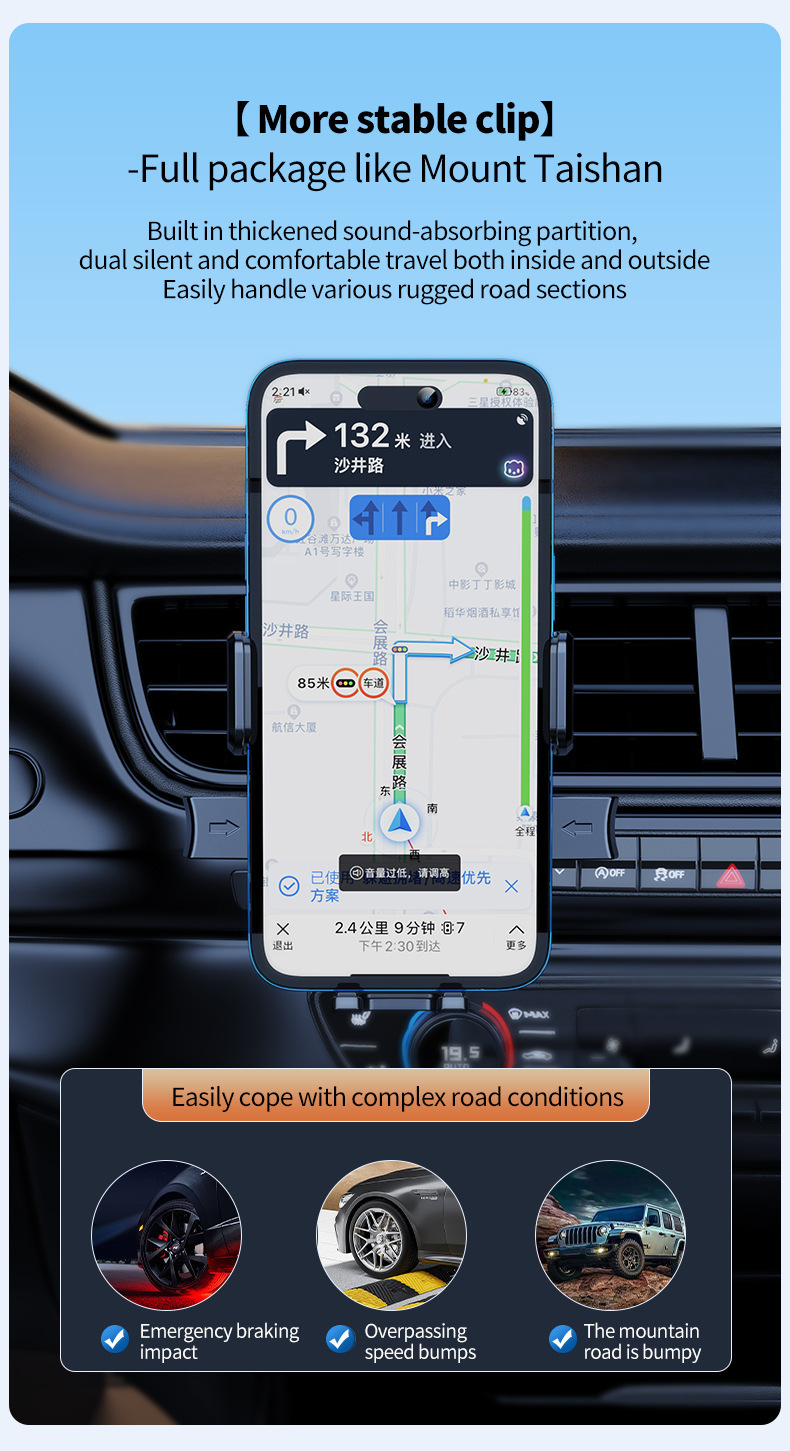 - Easy Installation & Practical Functionality: Choose between a strong suction cup for dashboard mounting or a robust hook clip for air vent attachment. Both options provide secure, shake-free support, allowing for convenient navigation and hands-free calls without complex tools.