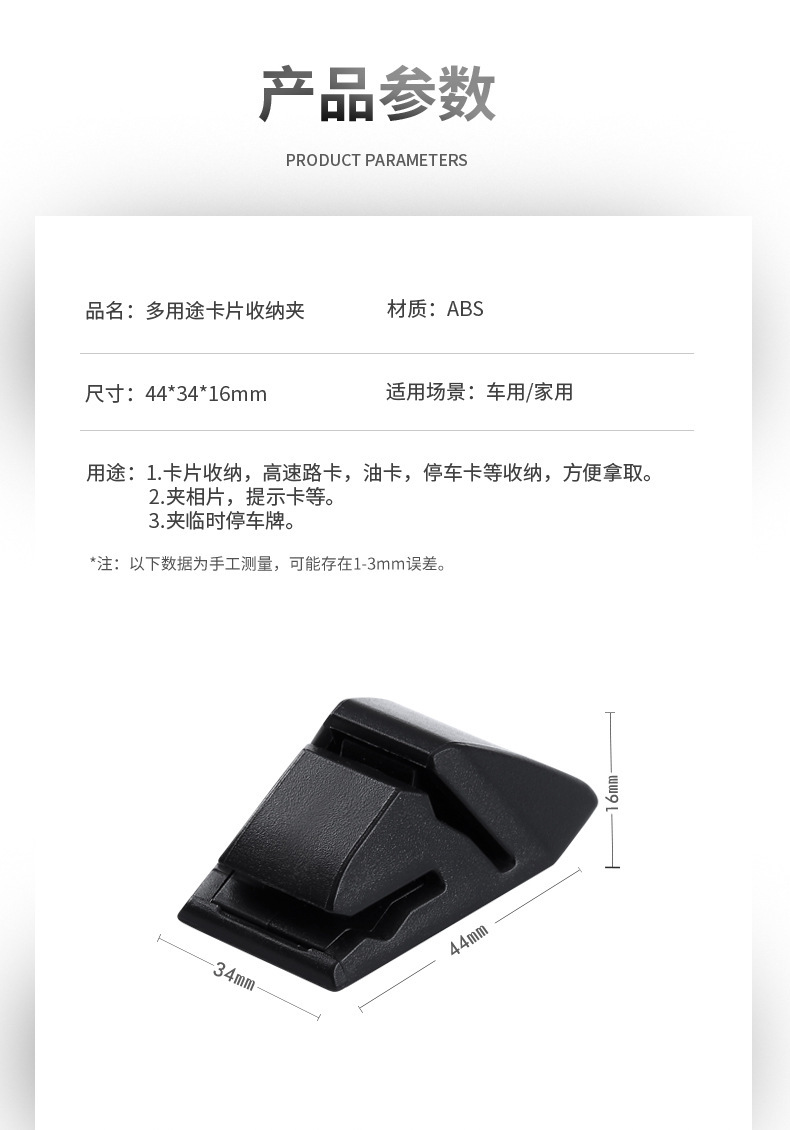 - Sleek & Space-Saving Design: Featuring a compact 44*34*16mm dimension in a classic black finish, this multi-functional clip seamlessly integrates into your car’s interior. Its ingenious design doesn’t obstruct driving visibility while keeping essentials organized.