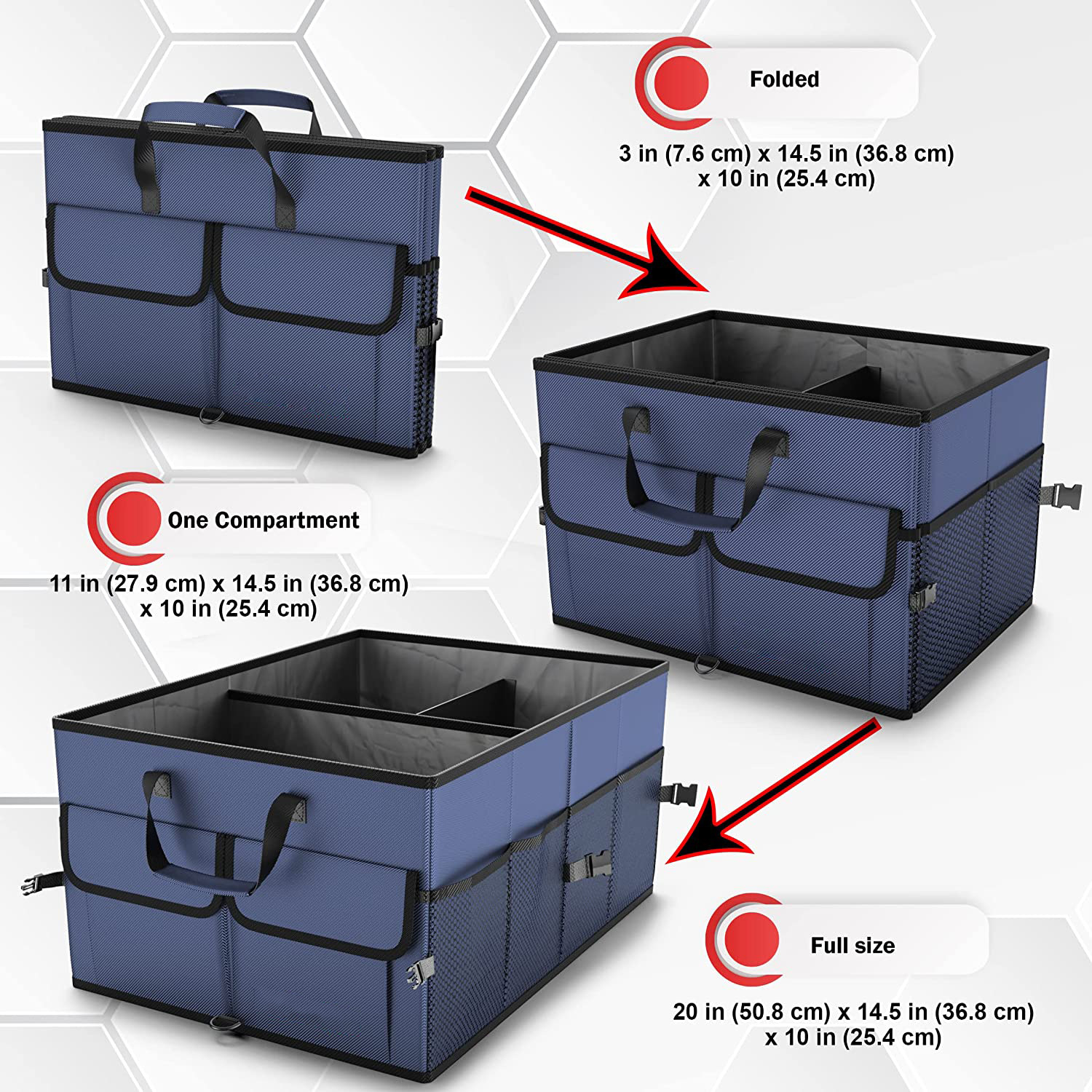 - Foldable & Space-Saving Design: Featuring a convenient foldable design, this trunk organizer can be easily collapsed and stored away when not in use, maximizing your trunk space and offering ultimate portability.