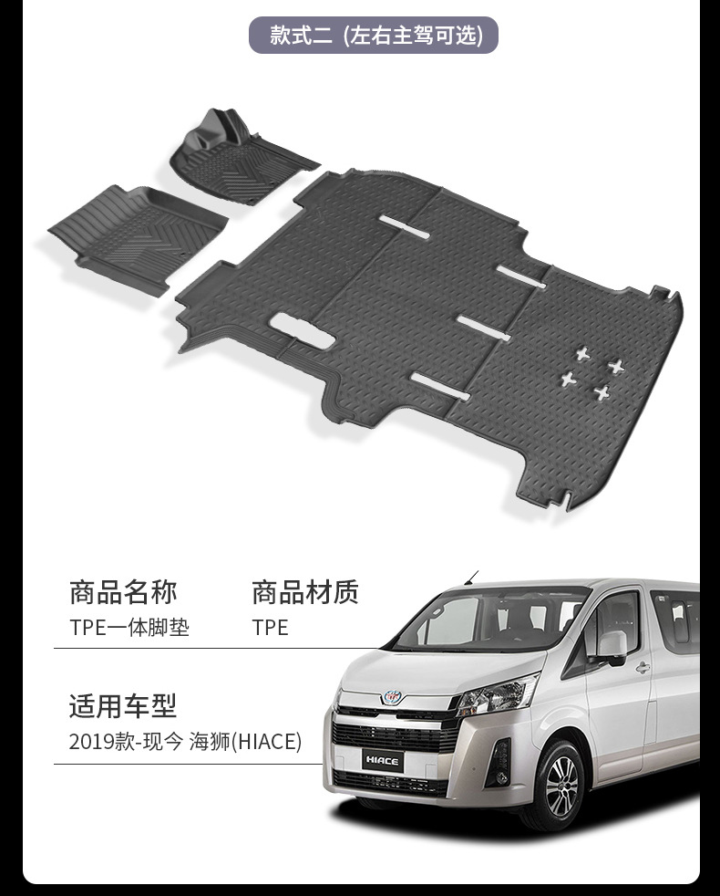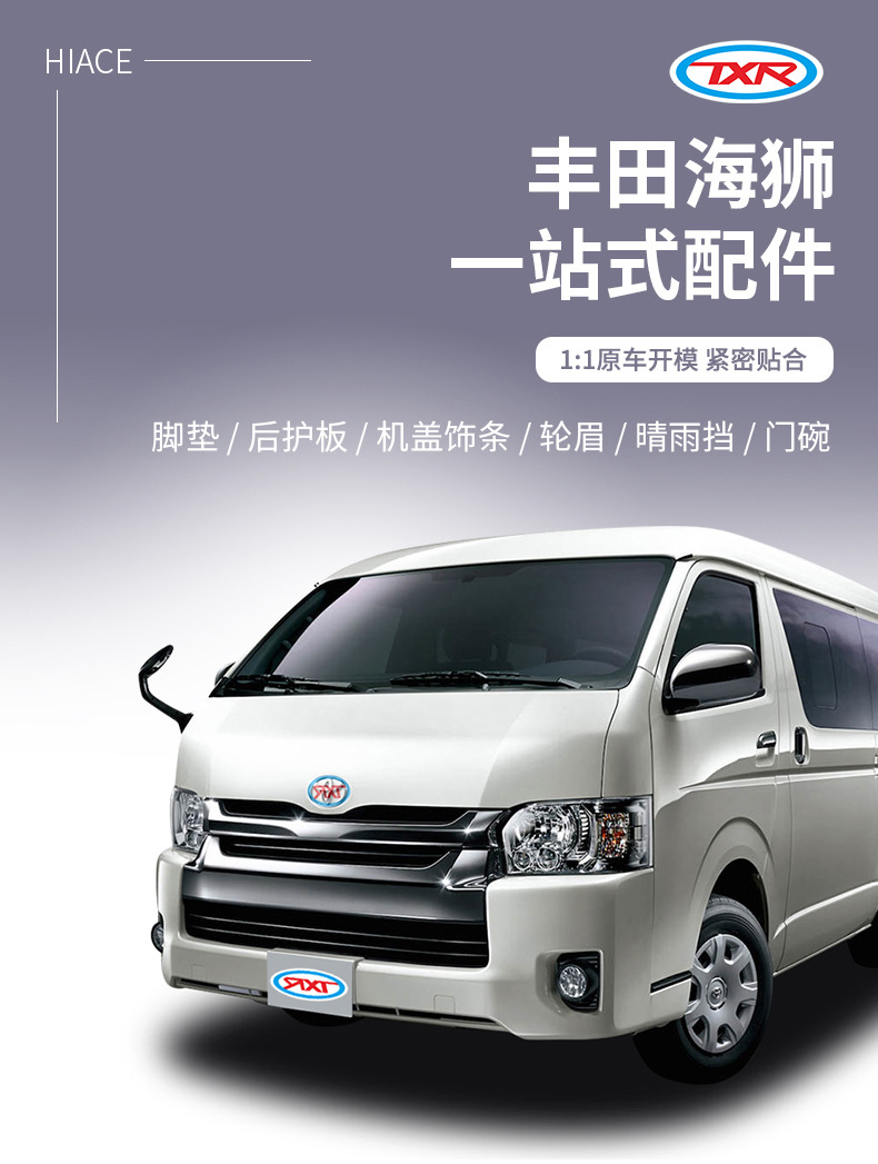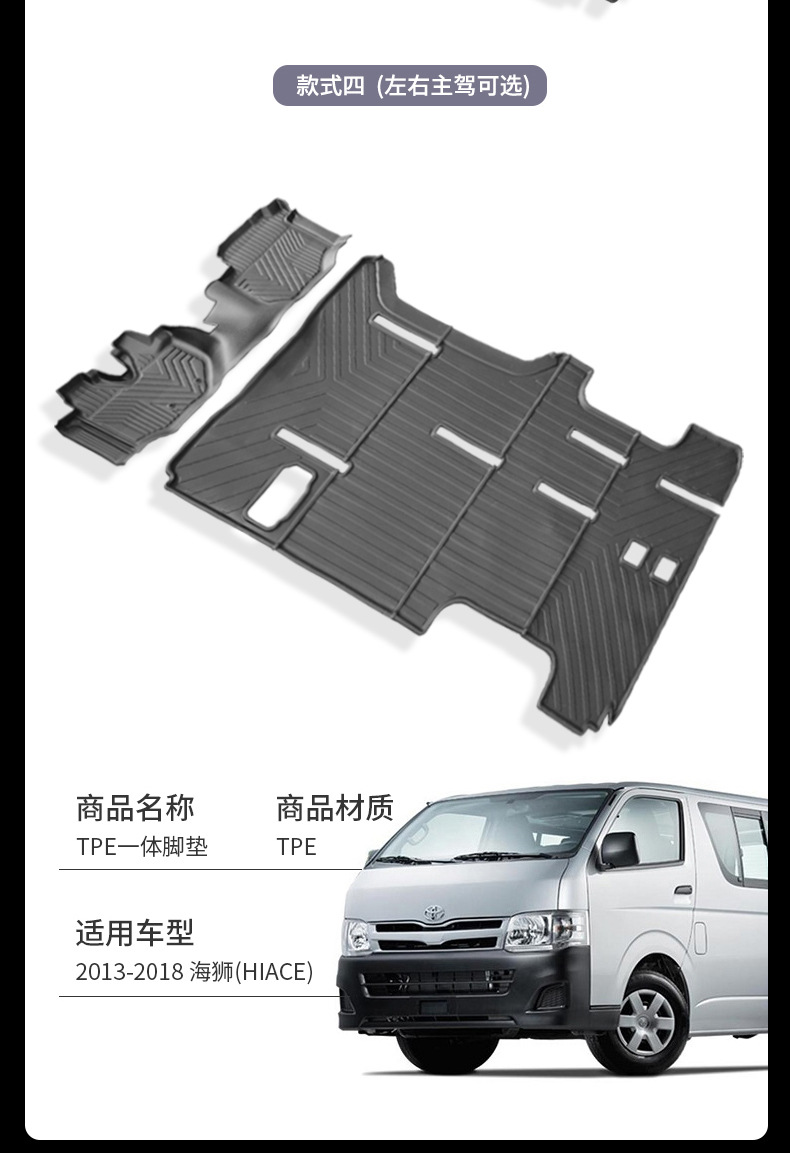 - Performance-Driven Design: This comprehensive package offers enhanced protection, improved aesthetics, and increased functionality for your Toyota Hiace, featuring all-weather TPE floor mats, protective wheel arch trims, practical rain guards, and stylish hood trims.