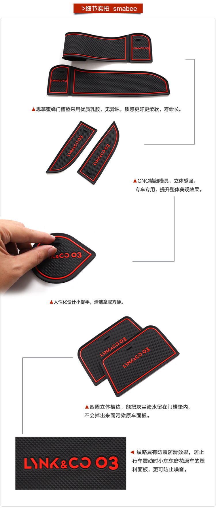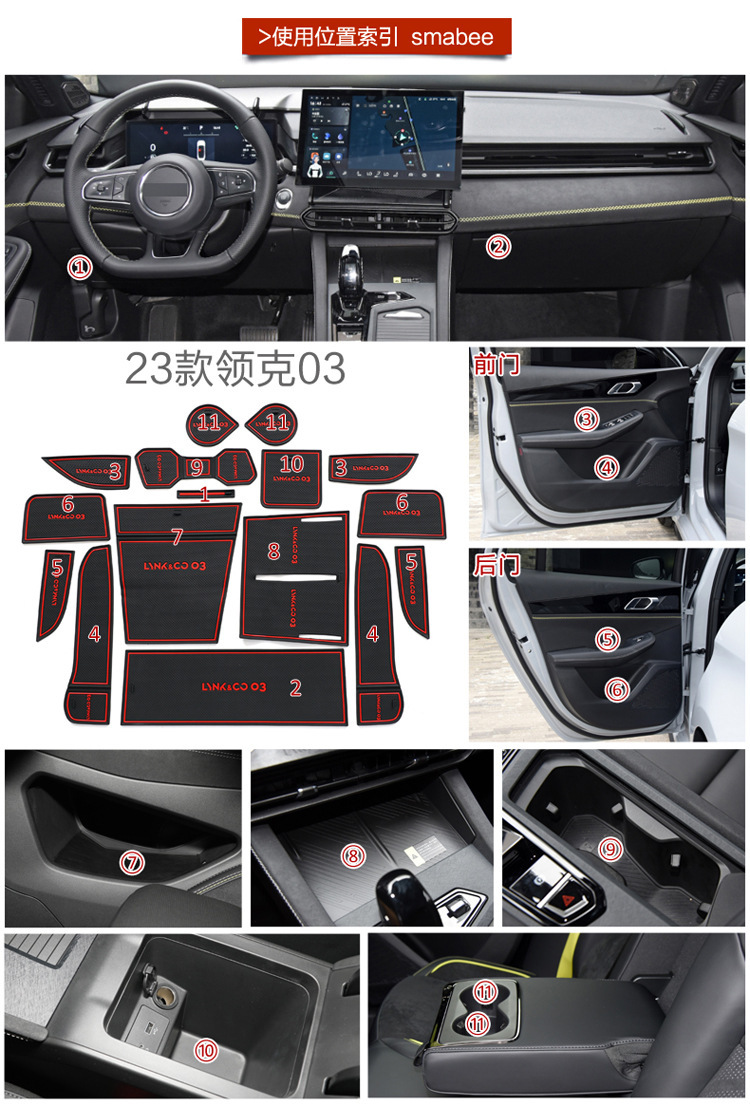 Multi-piece Car Door Slot Cup Holder Mat Center Console Storage Pad Set for Lynk & Co 03 2023
