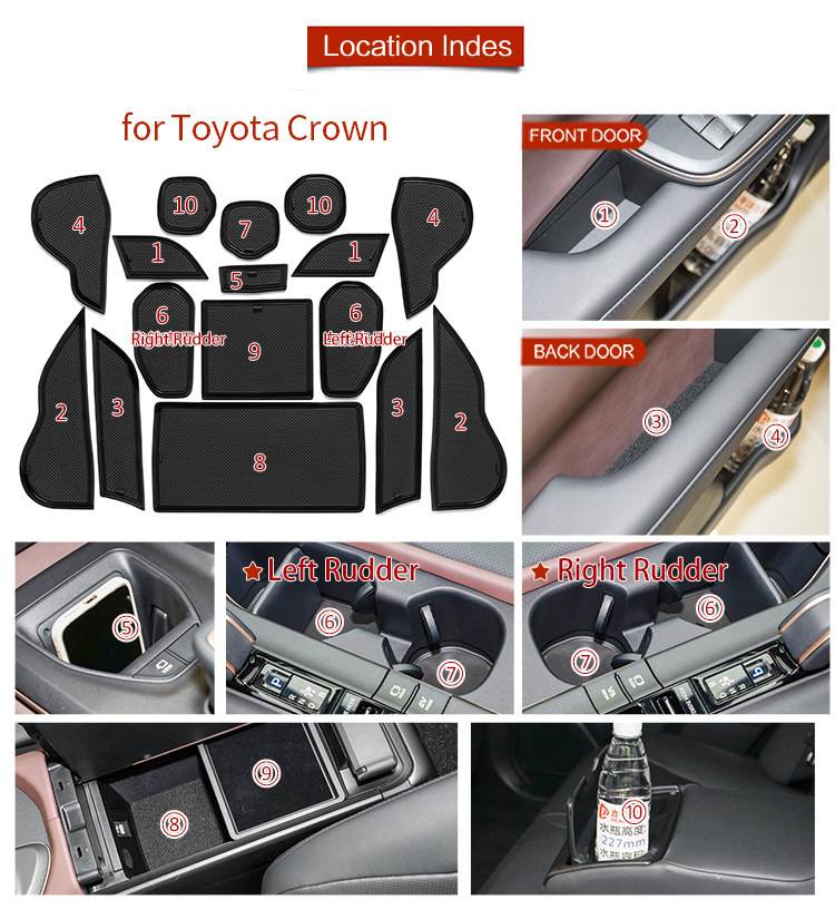 - Complete Package: Includes a full set of door slot mats and cup holder liners for your 2023 Toyota Crown, exactly as pictured. Available in multiple color accents.
