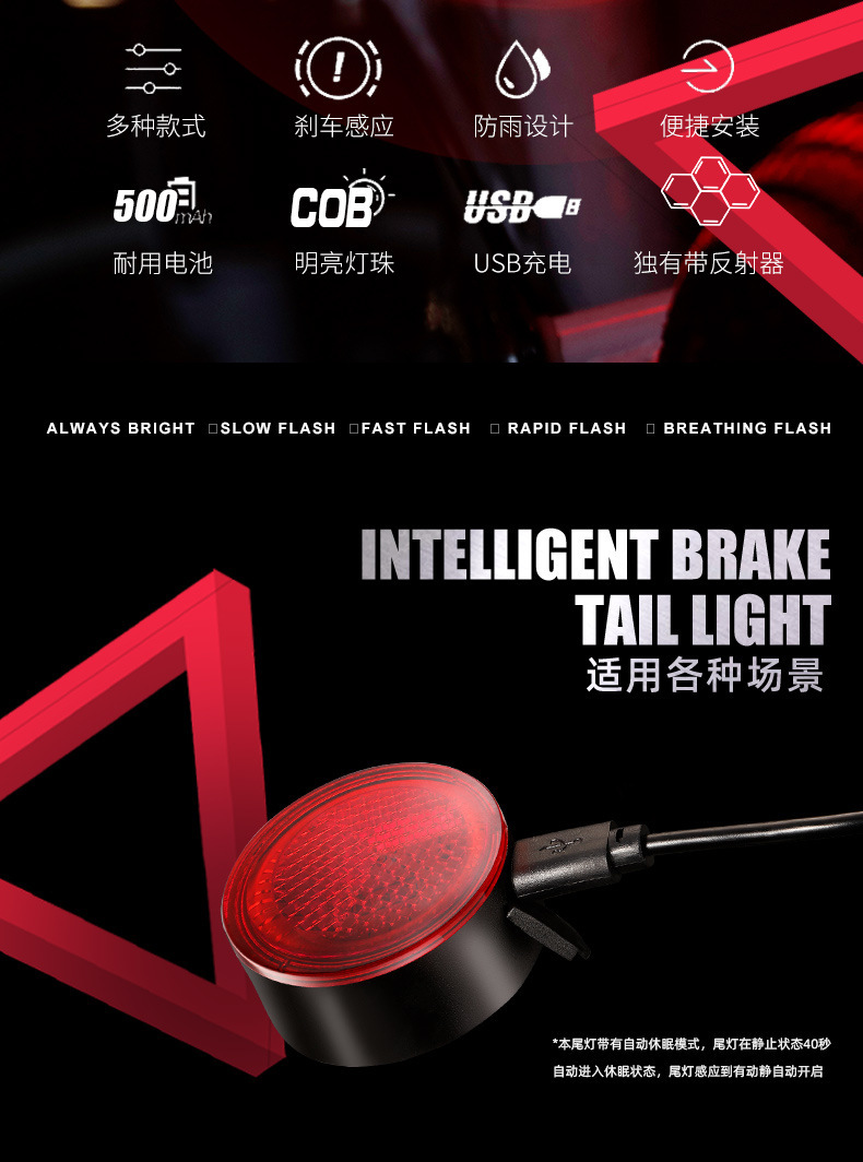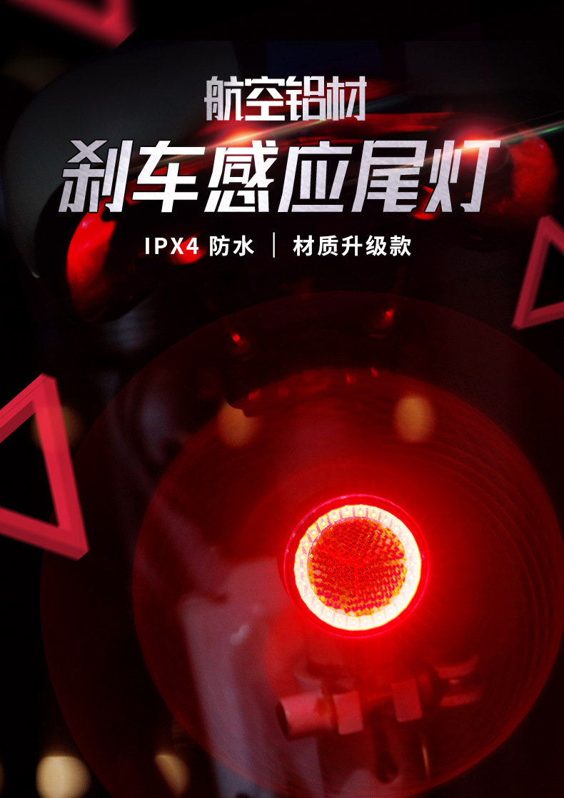 NQY Bicycle Brake Sensor Tail Light IPX4 Waterproof LED USB Rechargeable Cycling Safety Warning Light for Bicycle