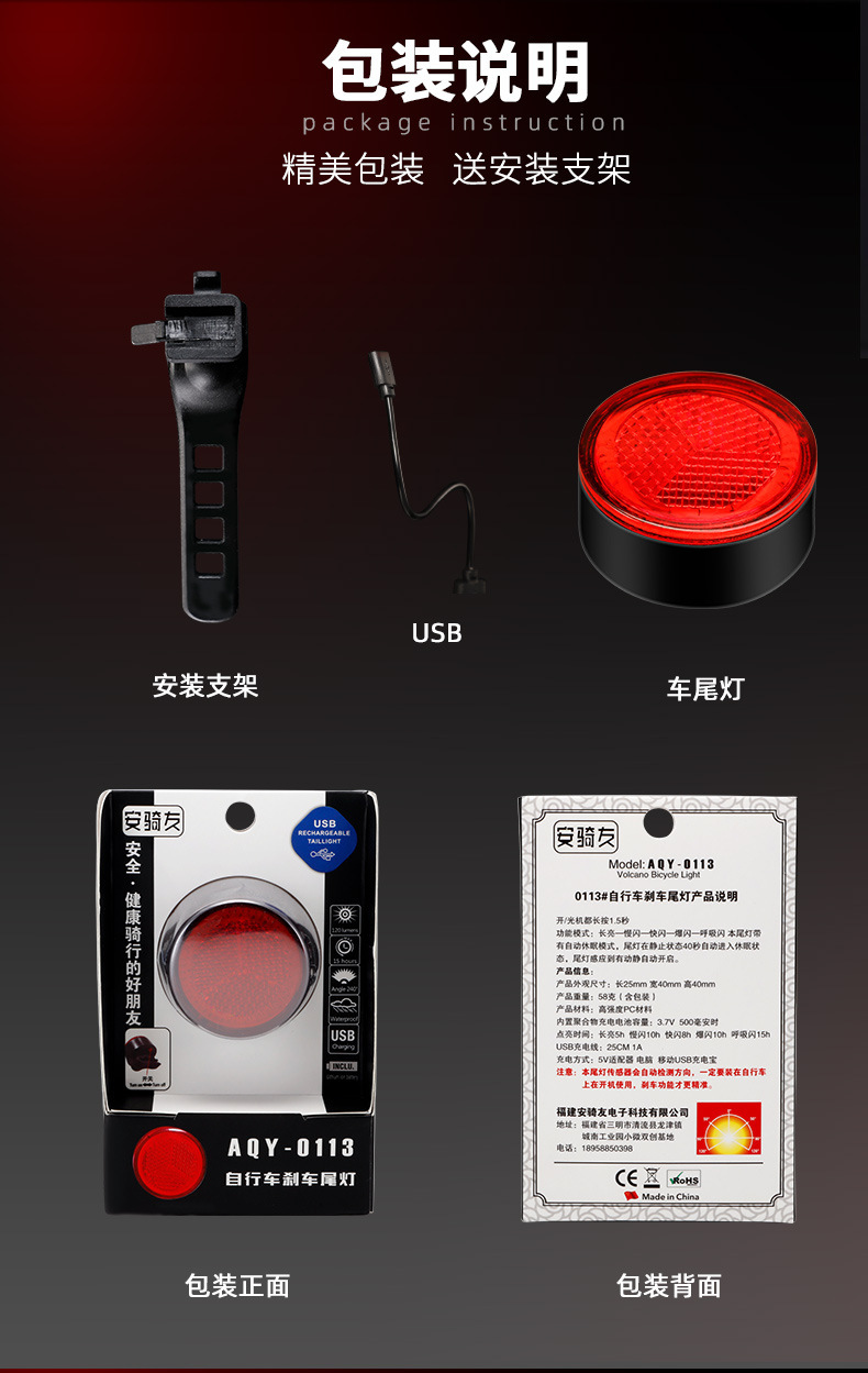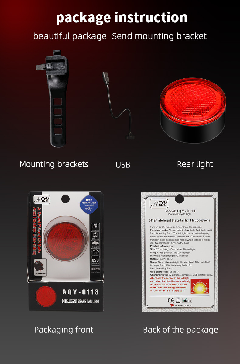 - Complete Package: Includes 1x Bicycle Brake Sensor Tail Light and 1x USB charging cable, exactly as pictured. Please ensure proper mounting for optimal performance.