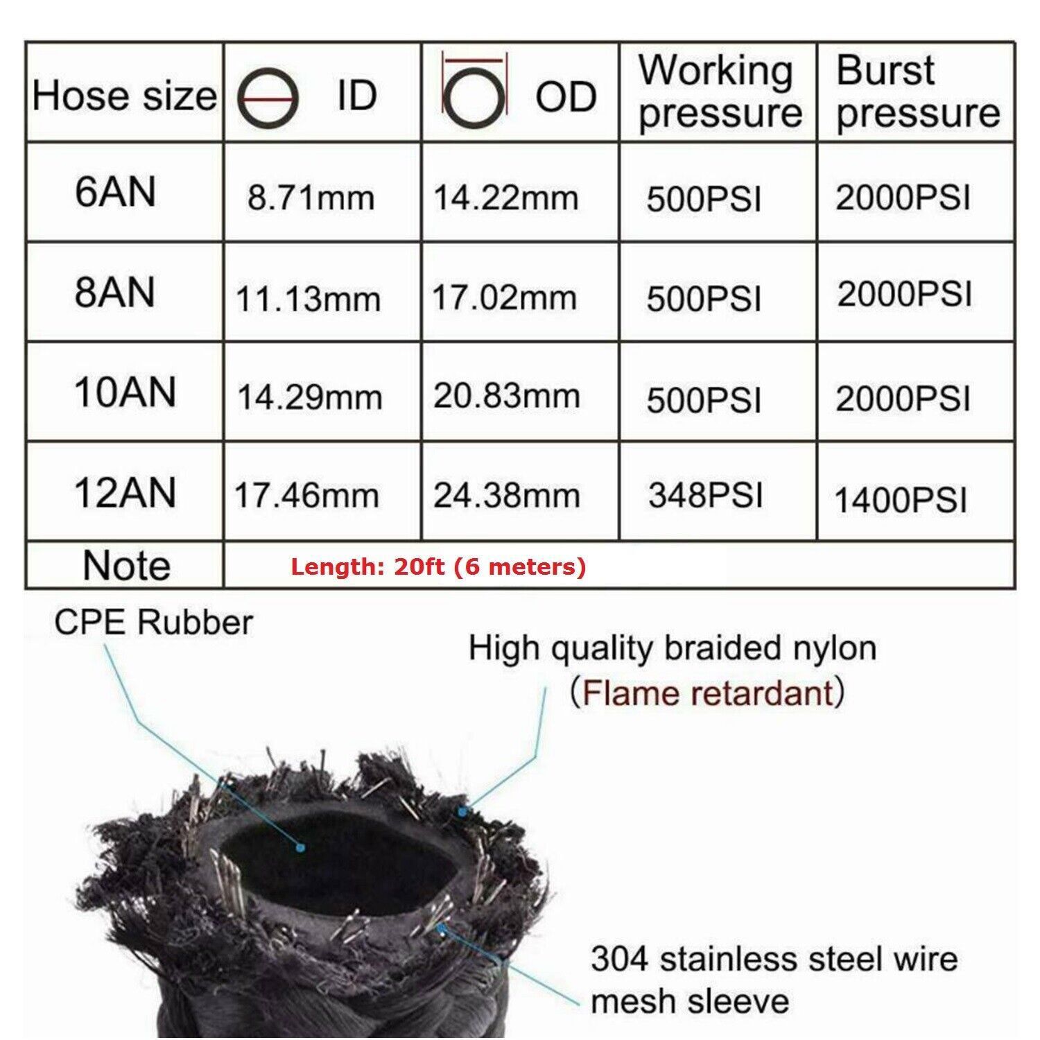 • Unmatched Compatibility: Perfectly upgrade your universal AN6 fitting hose with this 20FT nylon braided oil cooler hose kit, ensuring a seamless fit and optimal performance for various automotive applications.