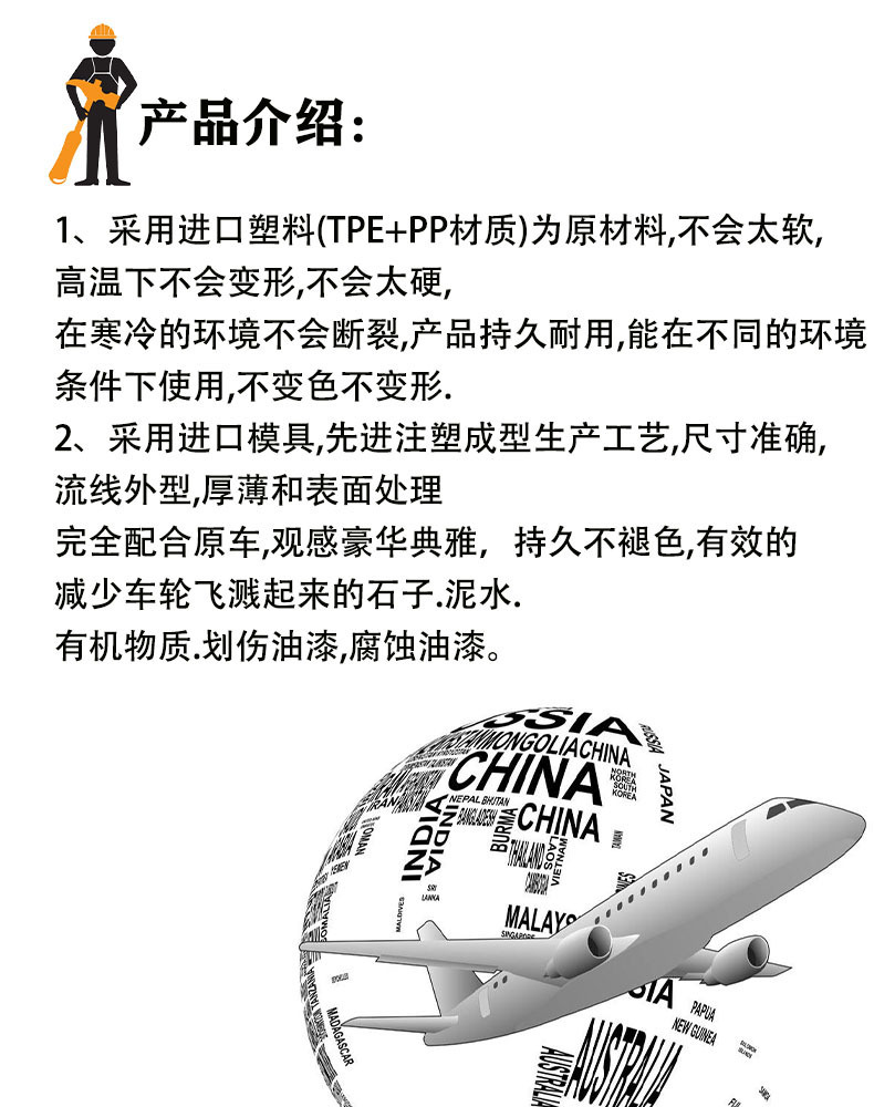 - Premium Material & Enhanced Durability: Constructed from high-quality TPE+PP plastic, these mud flaps offer excellent resistance to impact, corrosion, and extreme temperatures, providing long-lasting protection against road debris.