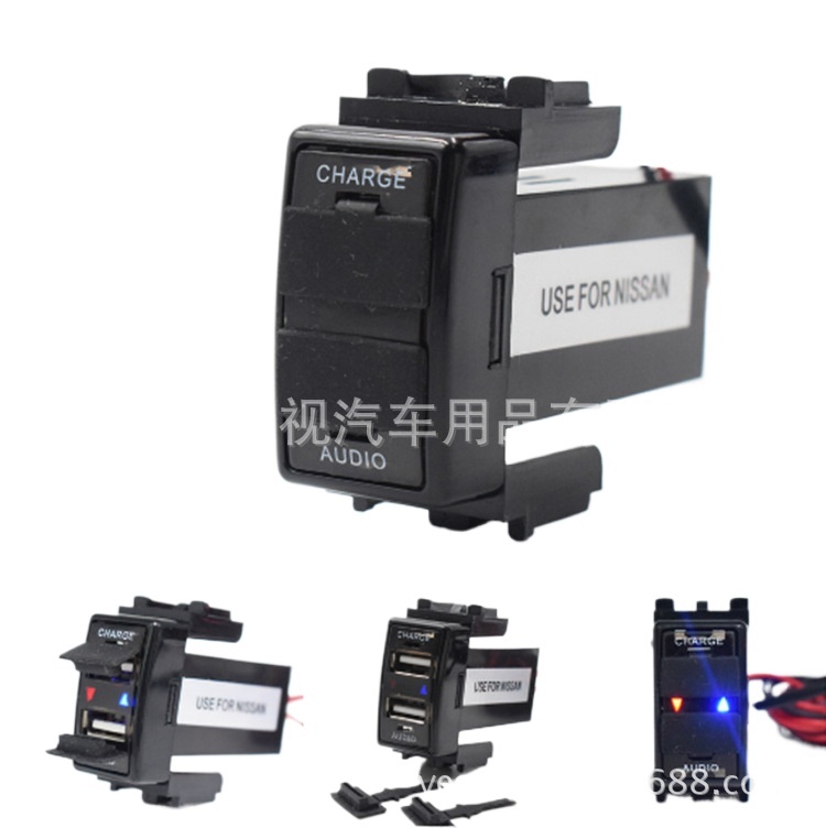 - Direct Fitment: A perfect replacement for car interior modification. Compatible with Nissan models for original position installation. Features “CHARGE” and “AUDIO” ports.