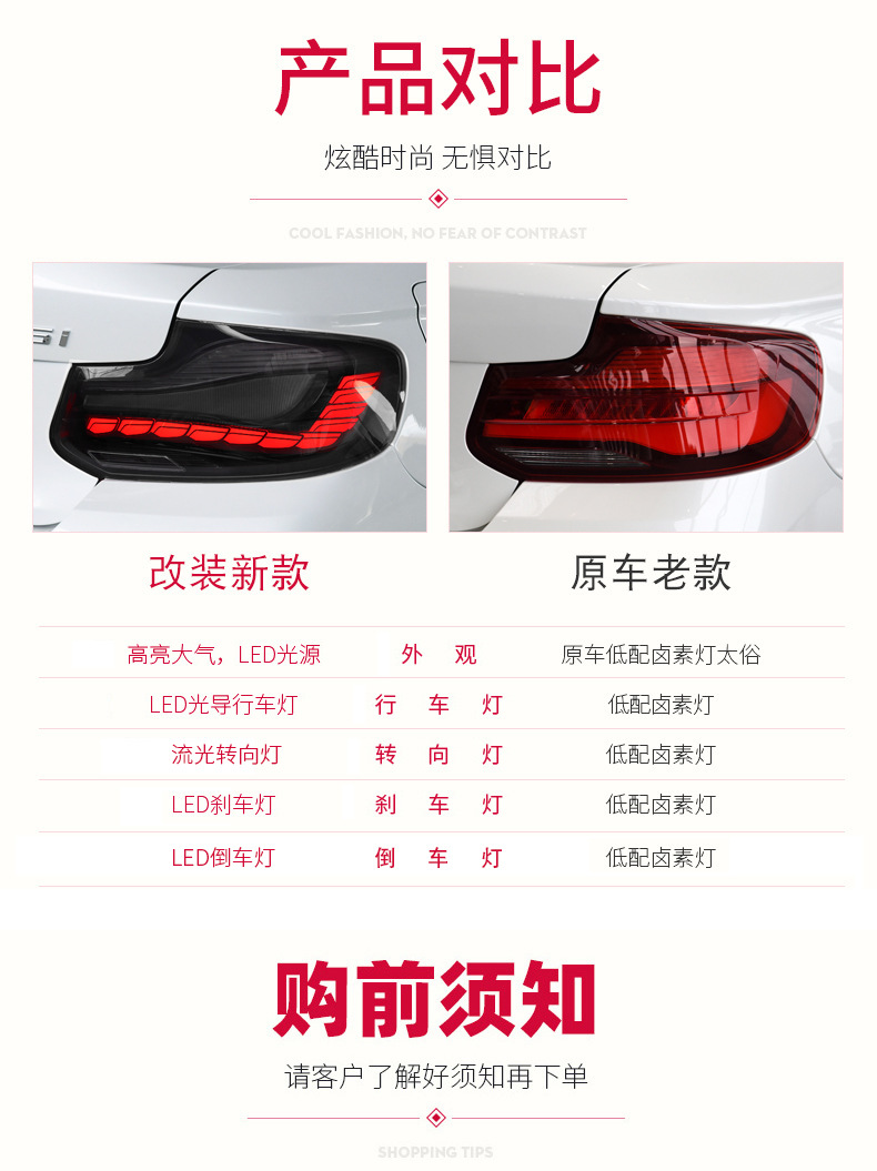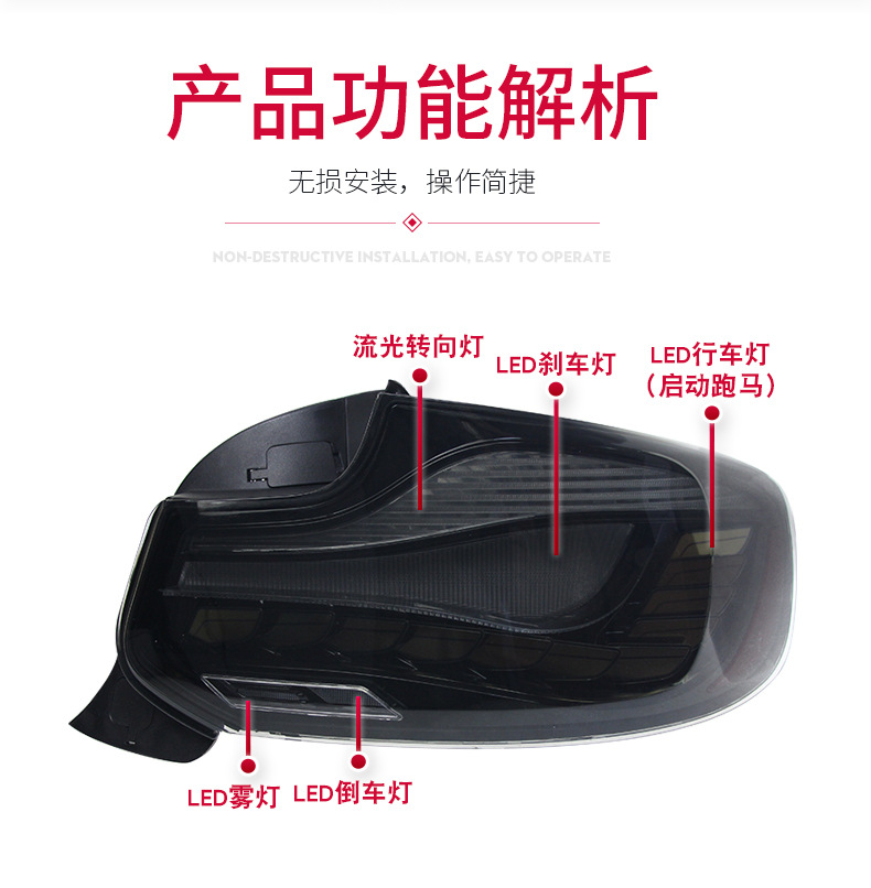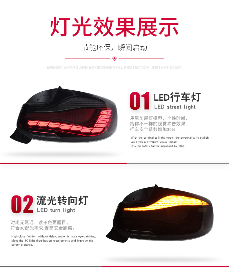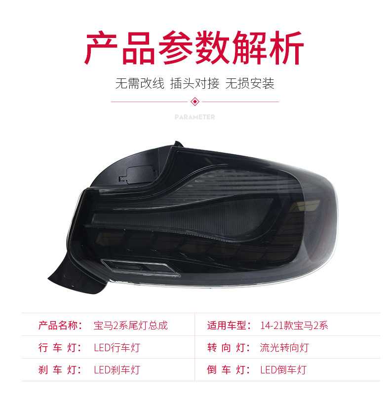 - Enhanced Aesthetics: Featuring modern OLED dragon scale running lights and dynamic flowing turn signals, these assemblies provide a sleek, customized look, elevating your BMW 2 Series’ rear design.