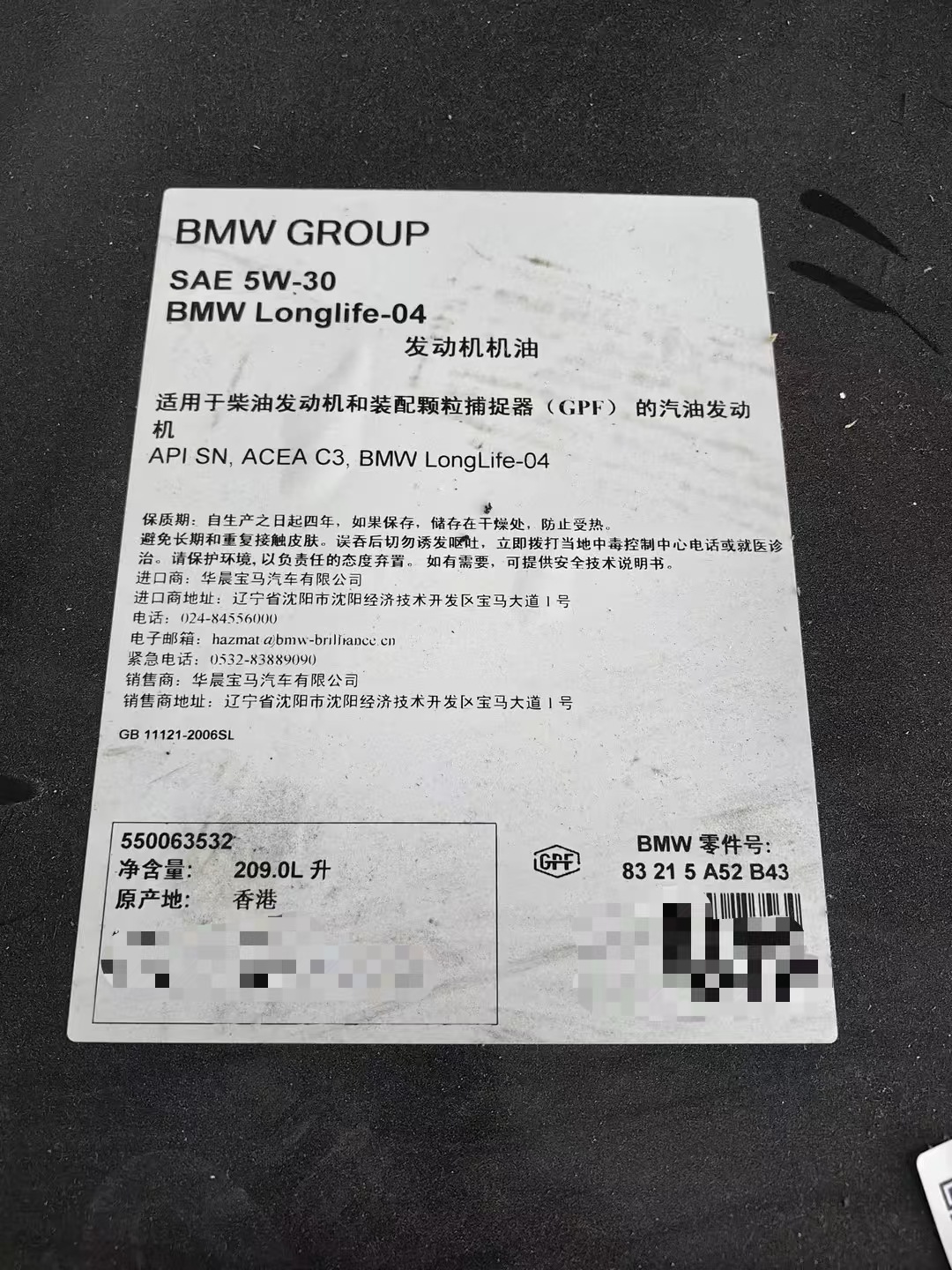 Original BMW 5W30 Engine Oil for BMW X1, X3, X5, X7 Series with GPF 209L Barrel 83215A52B43