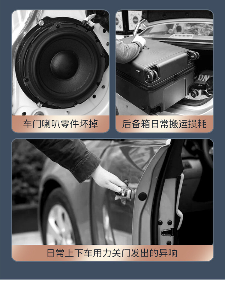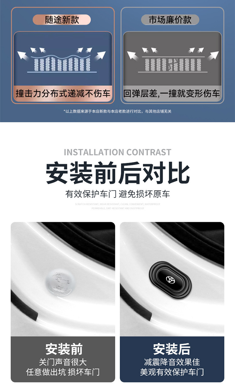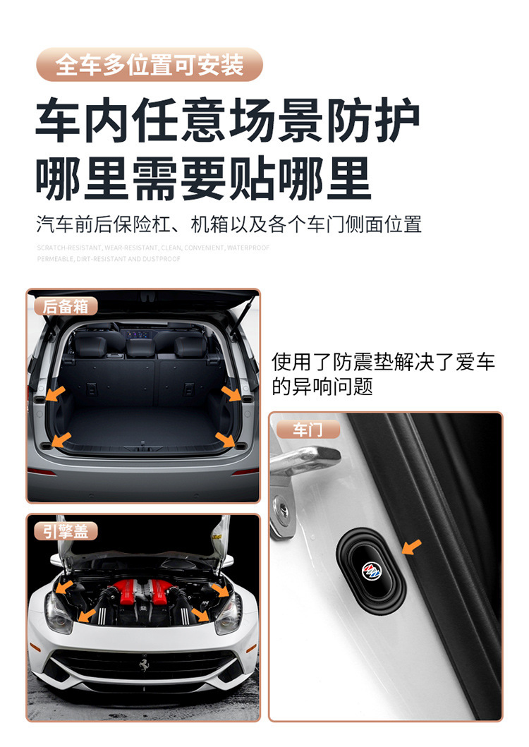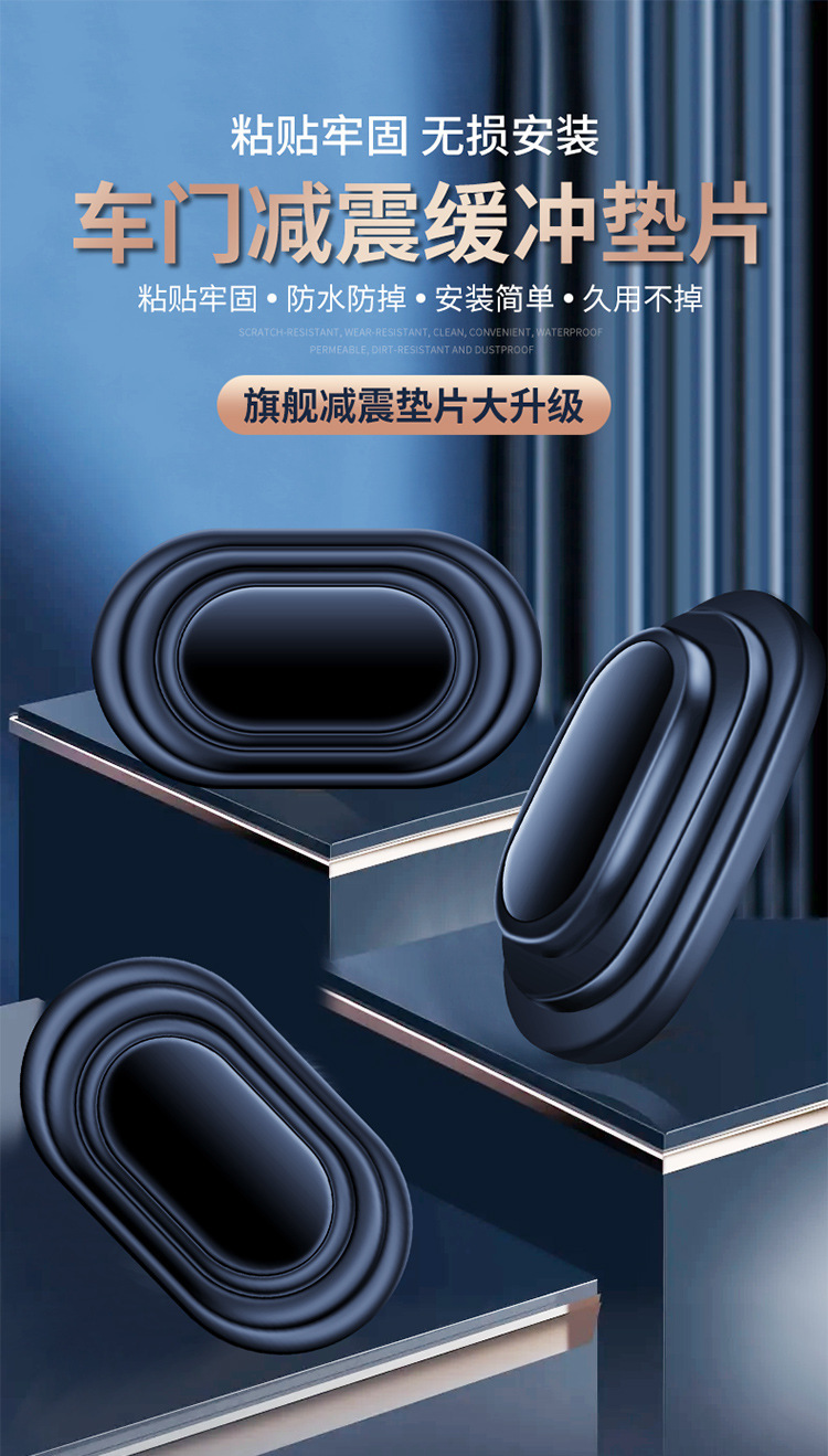 - Performance-Driven Design: Oval shape with enhanced dampening properties effectively reduces door closing noise and protects car doors from impacts, as visually demonstrated by the arrows indicating shock absorption.