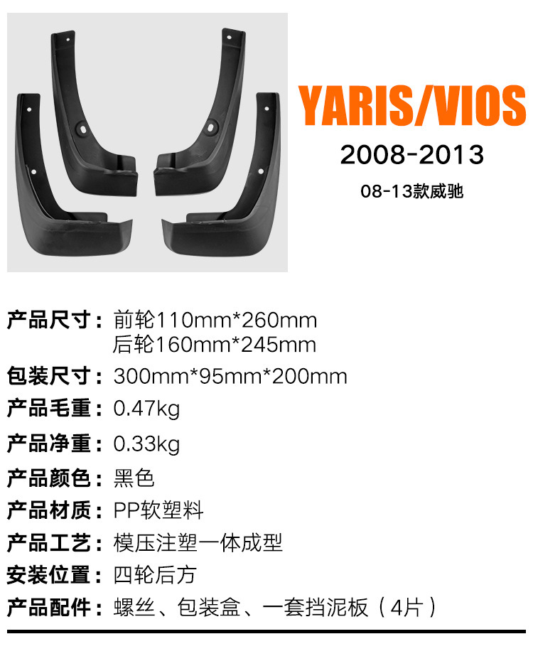 PP Soft Plastic Mud Flaps Splash Guards for Toyota Yaris Sedan 2006-2012
