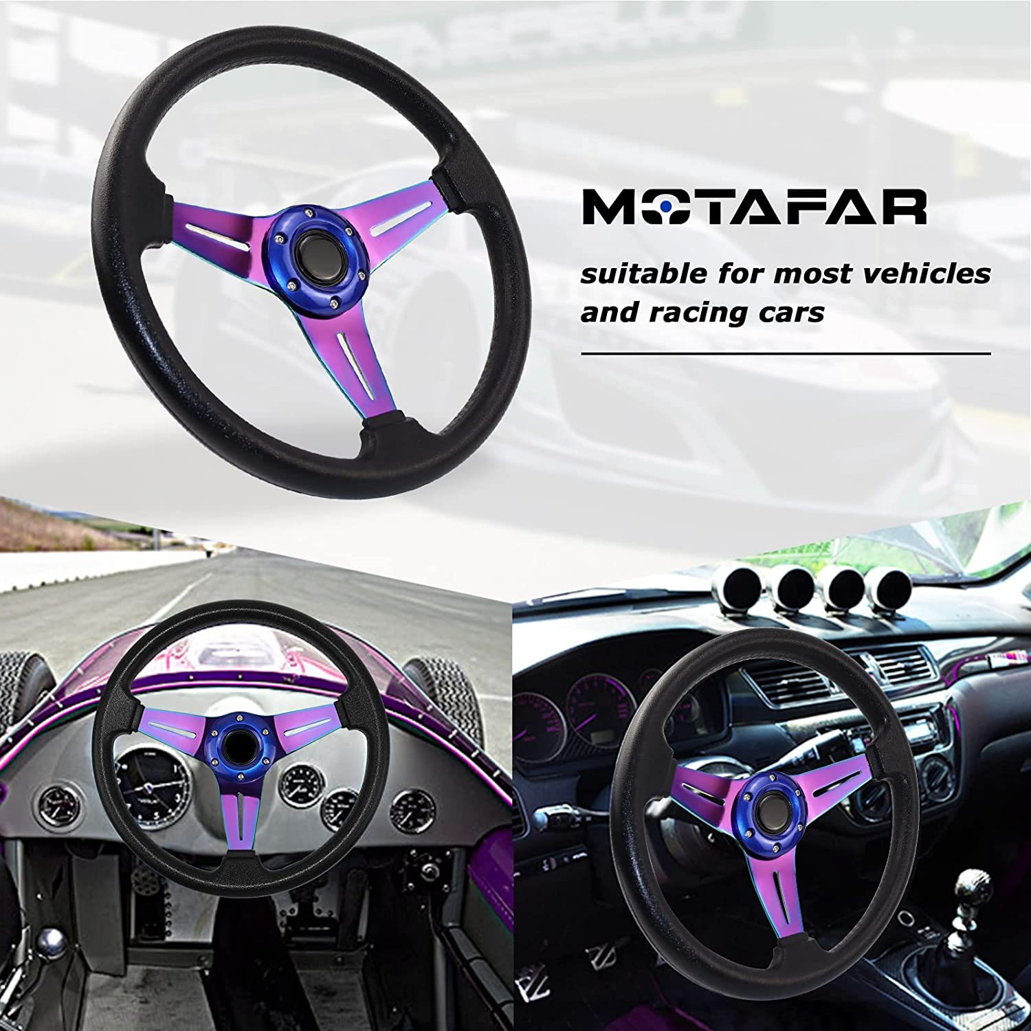 - Package Content & Value: Includes 1x 14-inch PU Leather Racing Steering Wheel. A perfect choice for enthusiasts looking to customize and upgrade their vehicle’s interior with a blend of style and performance.