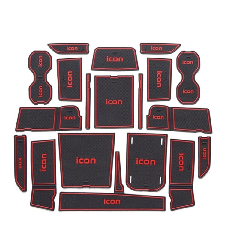 - Performance-Driven Design: Features an anti-slip, noise-reducing design to keep items stable in door slots and cup holders, preventing rattling and adding a touch of personalized style with the red accents and ‘icon’ logo.