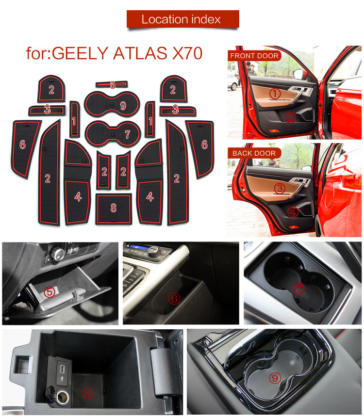 PVC Anti-Slip Mat Set for Proton X70 Car Door Slot Cup Holder Storage Pad