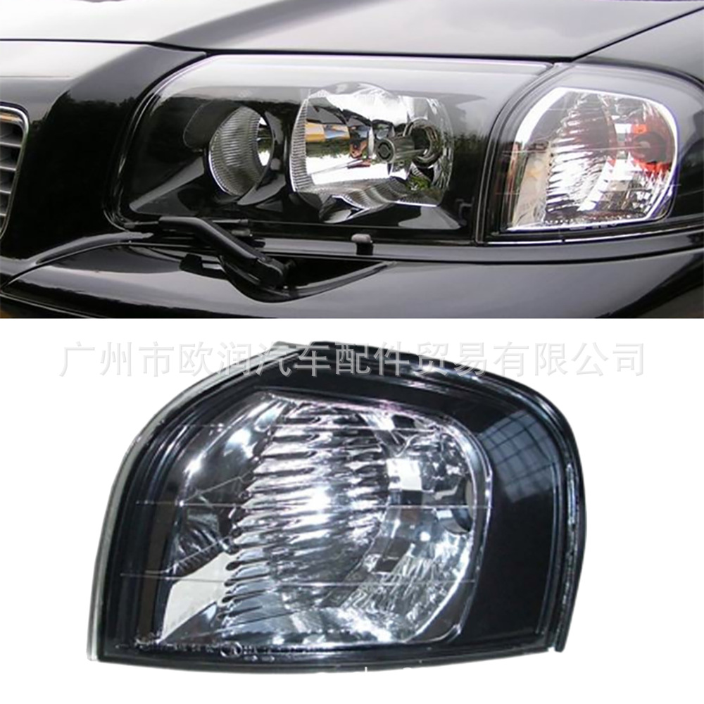 Pair Front Corner Light Assemblies 2 Bulb Holes for Volvo S80 1999-2006 (Black Bezel) 30698427 30698428