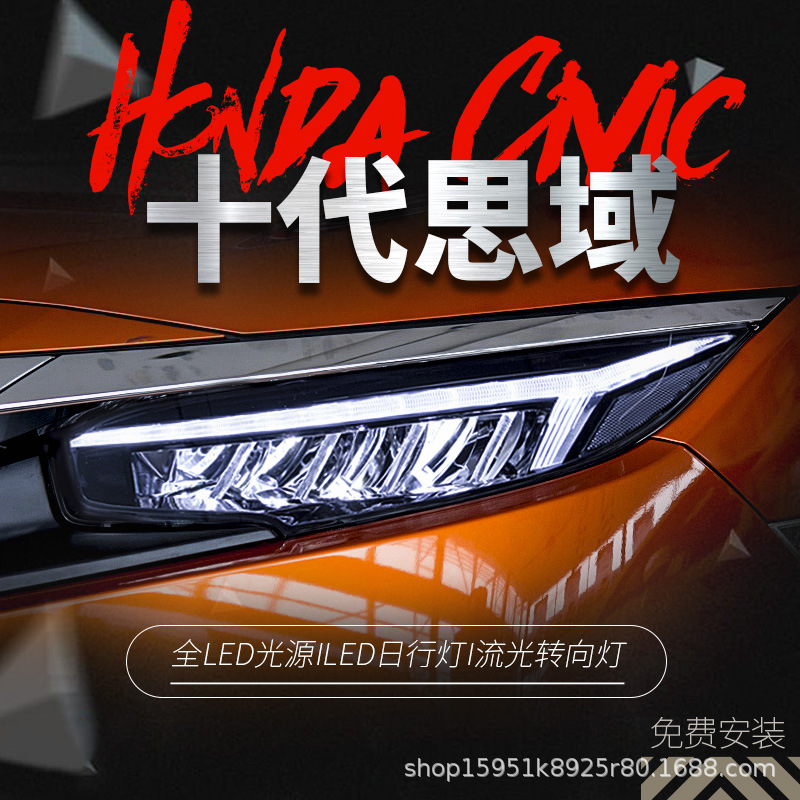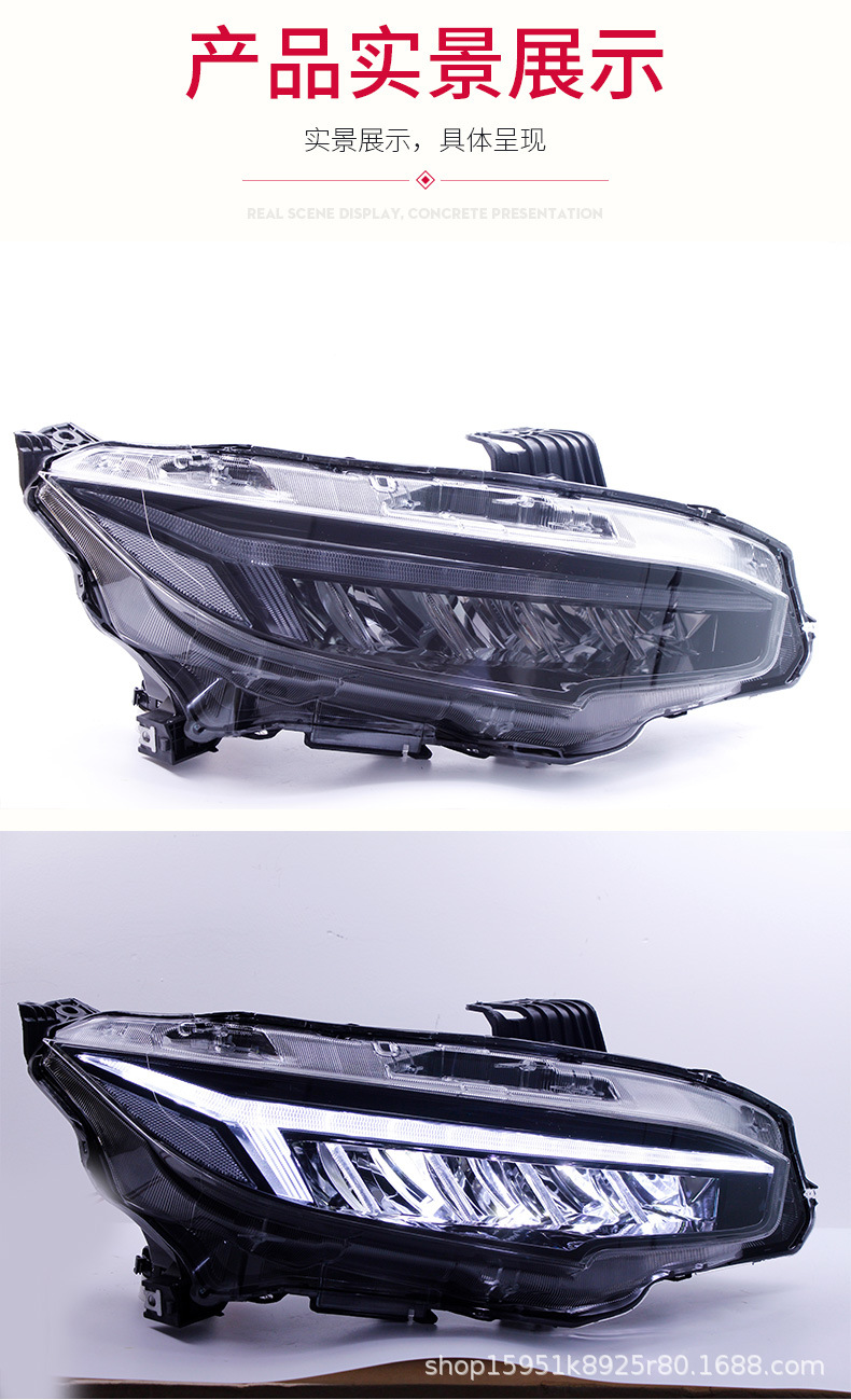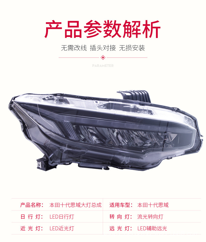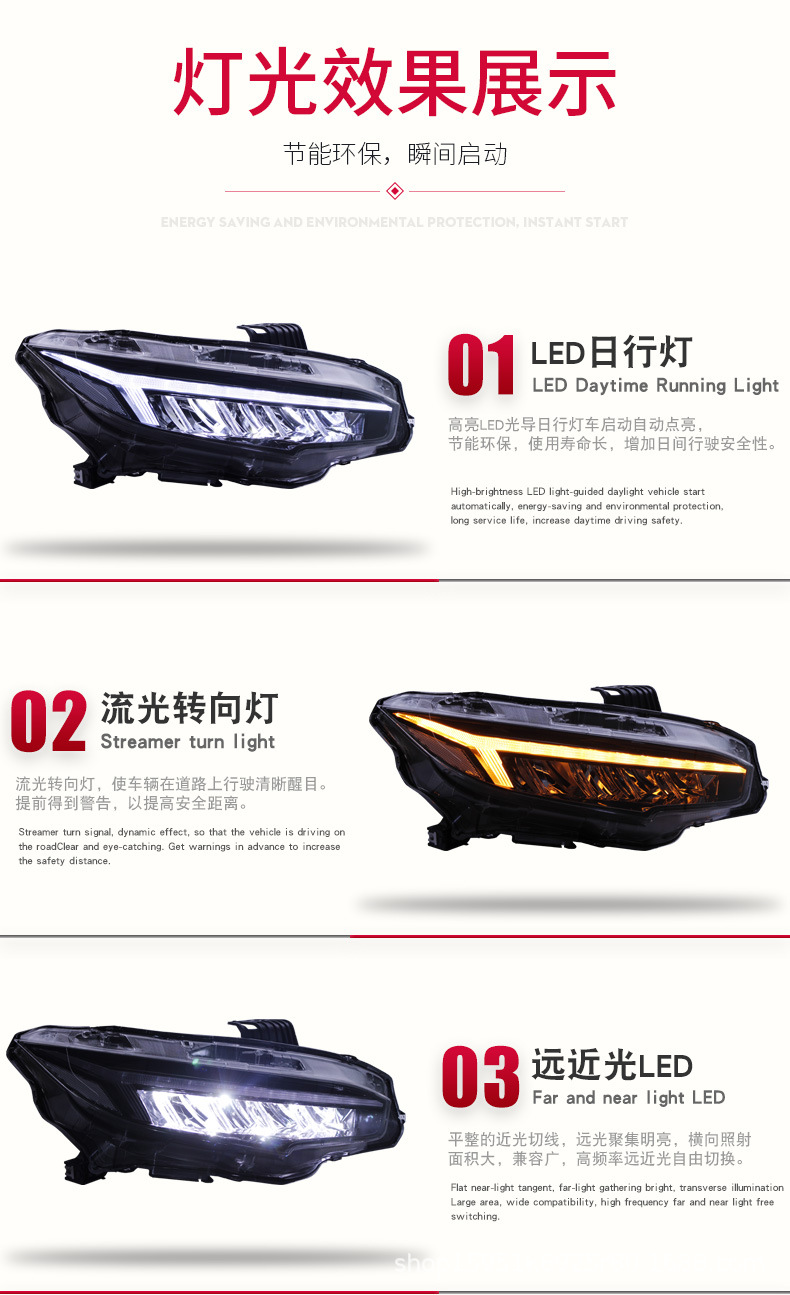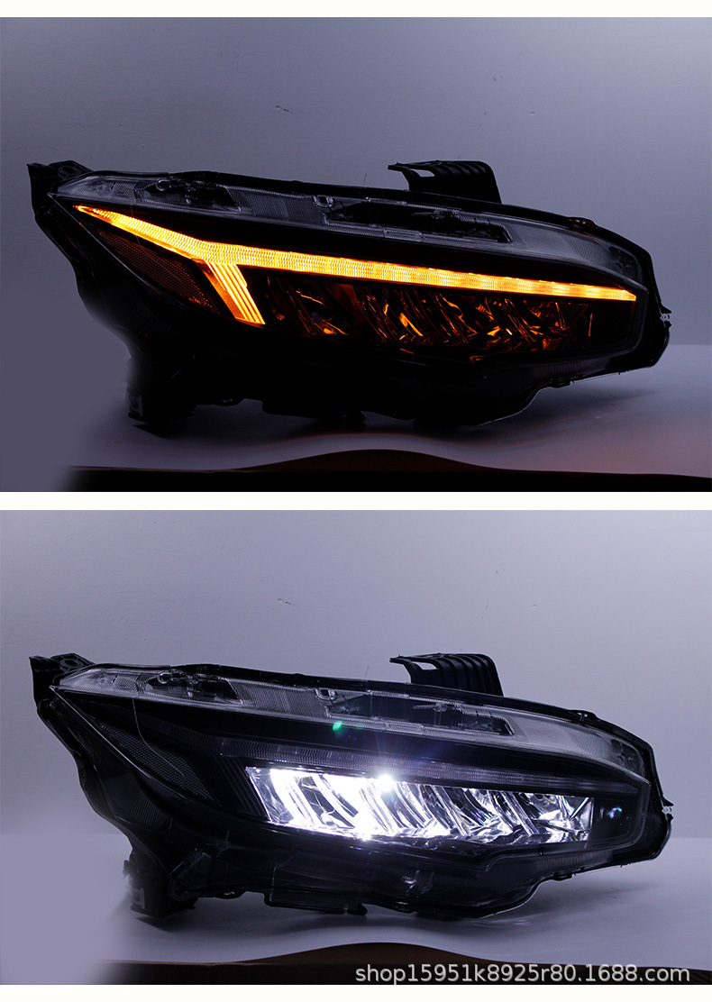 Pair LED Headlight Assembly for 10th Gen Civic 2016-2019 DRL Turn Signal Light Dragon Wing Style