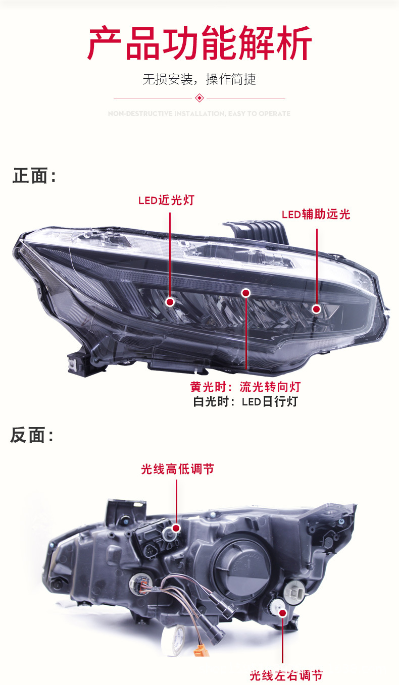 - Premium Illumination: Features advanced LED technology for superior brightness and energy efficiency, enhancing nighttime visibility and driving safety. Includes integrated LED DRL and dynamic sequential turn signals.