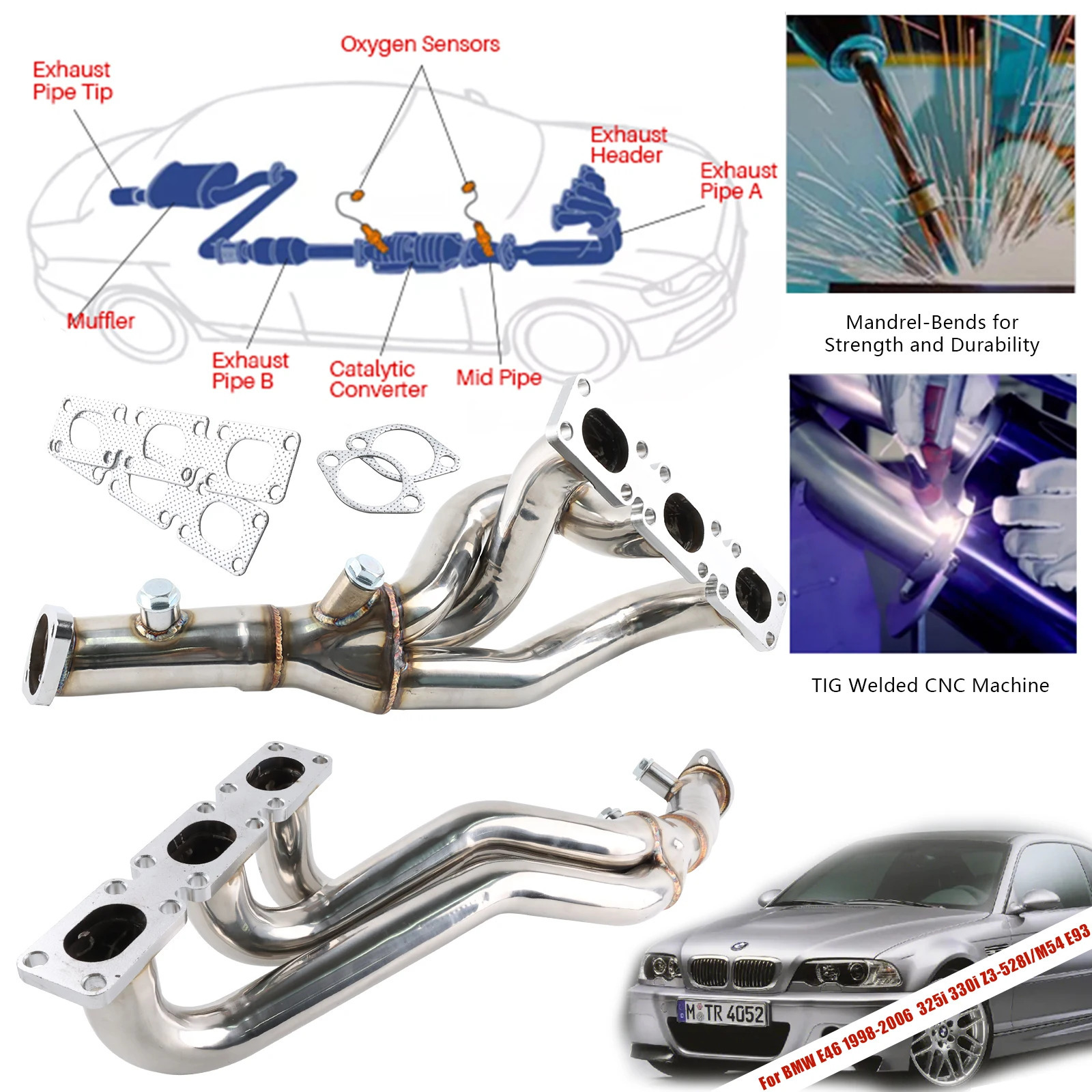 Performance Exhaust Header for BMW M54 Engine for BMW E46 323i, 328i, E93, Z3 528i, 528I (1998-2006).