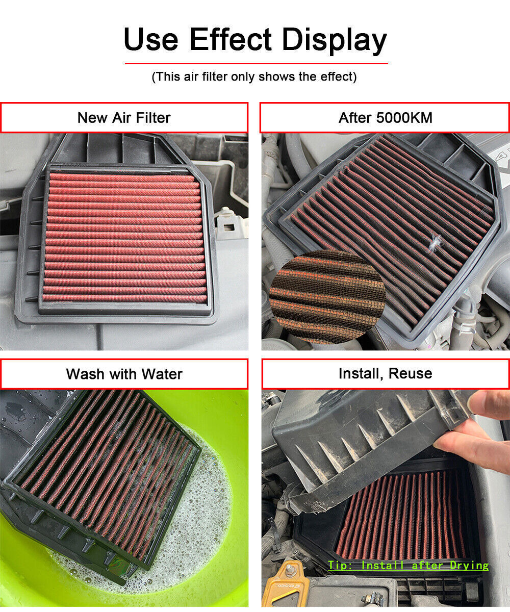 • PREMIUM DURABILITY & REUSABILITY: Constructed from high-quality, long-lasting materials, this engine air filter is designed for ultimate durability. It’s fully washable and reusable, providing excellent filtration while saving you money on replacements and reducing waste over time.