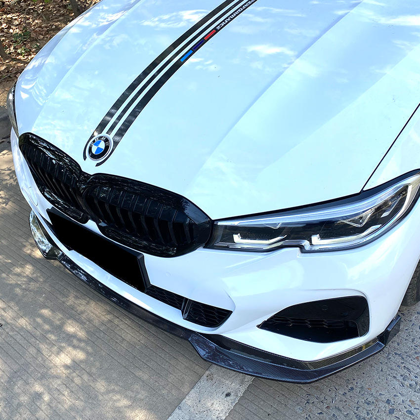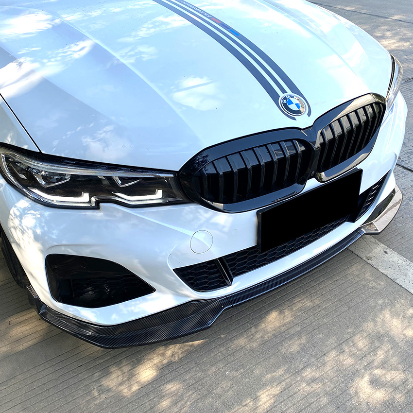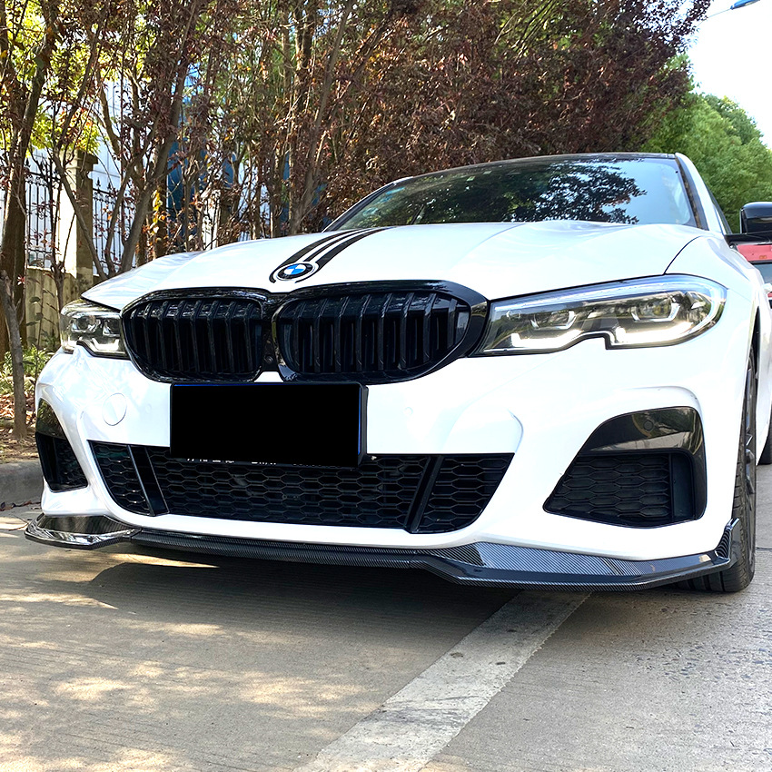 Piano Black Carbon Fiber Look Front Bumper Lip Spoiler for BMW 3 Series G20 M Pack 2019-2022 320i 330i