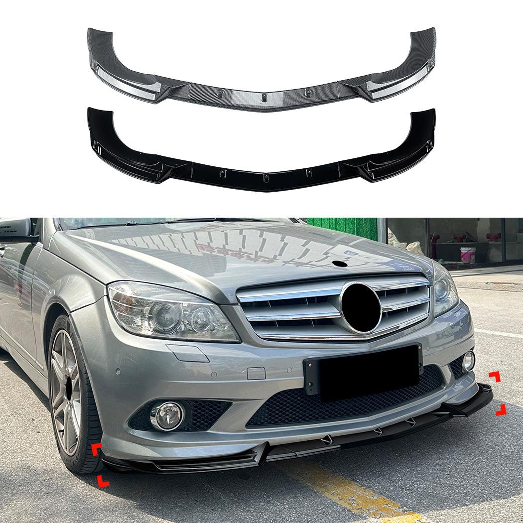 Piano Black Carbon Fiber Look Front Bumper Lip Spoiler for Mercedes Benz C Class W204 Pre-Facelift AMG Line 2007-2010
