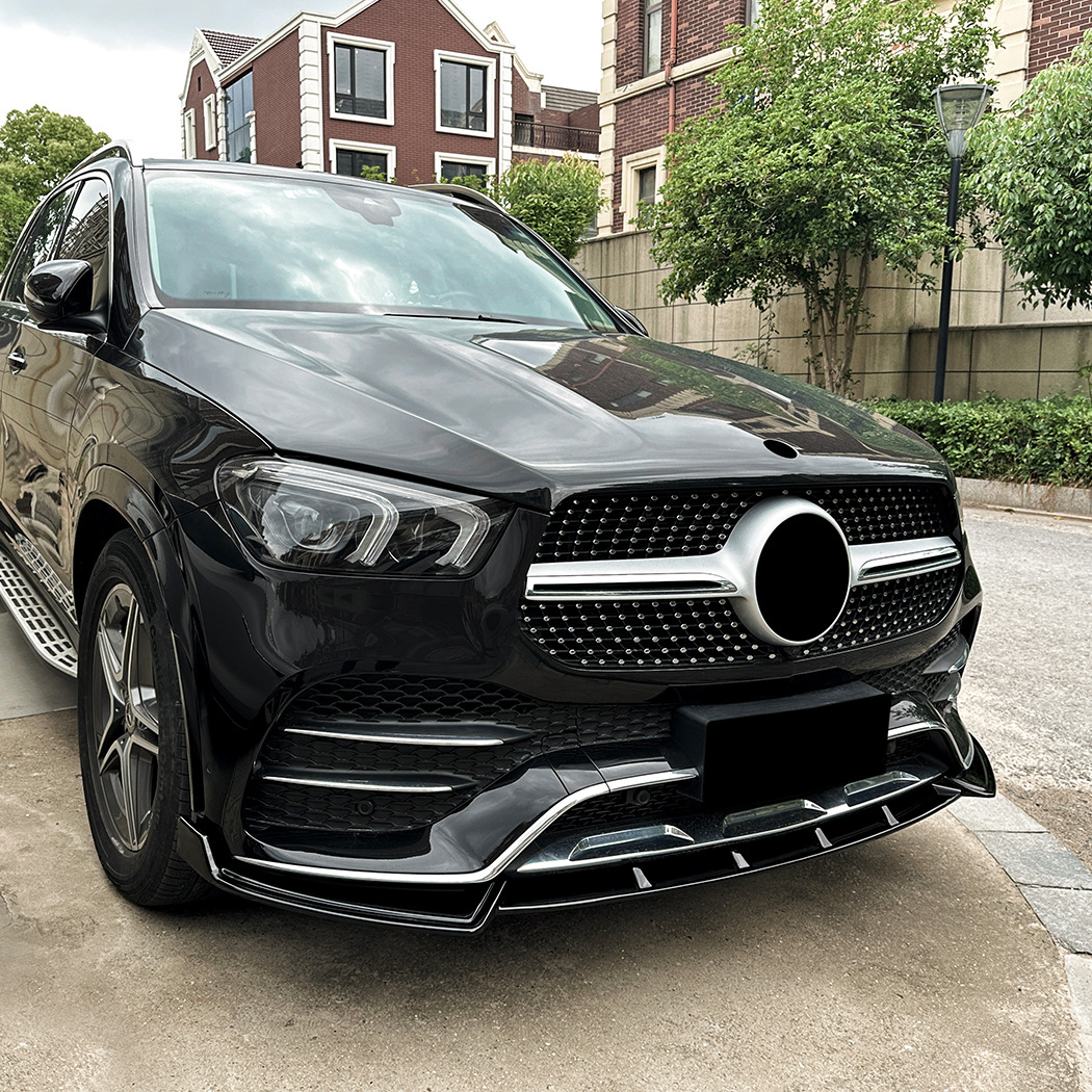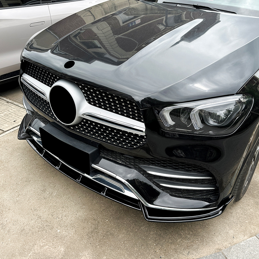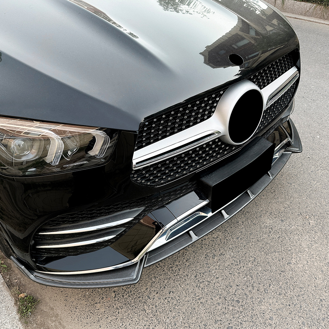 Piano Black Carbon Fiber Look Front Shovel Lip Spoiler for Mercedes Benz GLE W167 C167 AMG 2019-2023