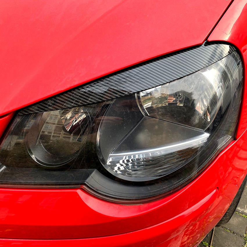 Piano Black Carbon Fiber Look Headlight Eyebrows Eyelids for VW Polo 9N 2005-2009