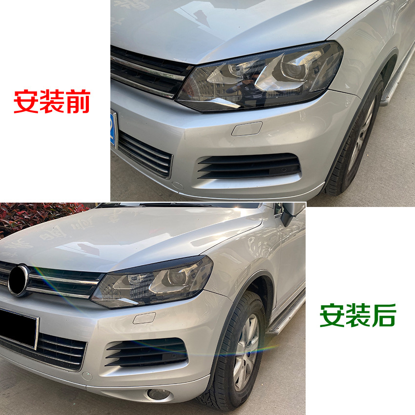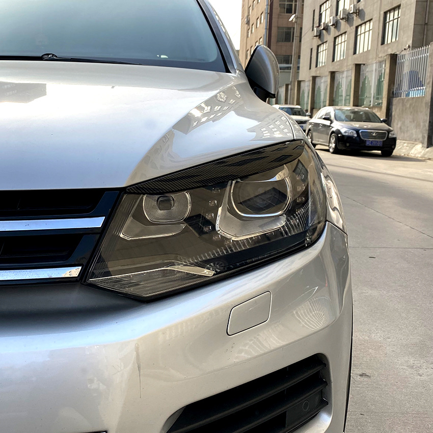 Piano Black Carbon Fiber Look Headlight Eyelid Eyebrow Sticker Trim Cover for VW Touareg 2010-2018