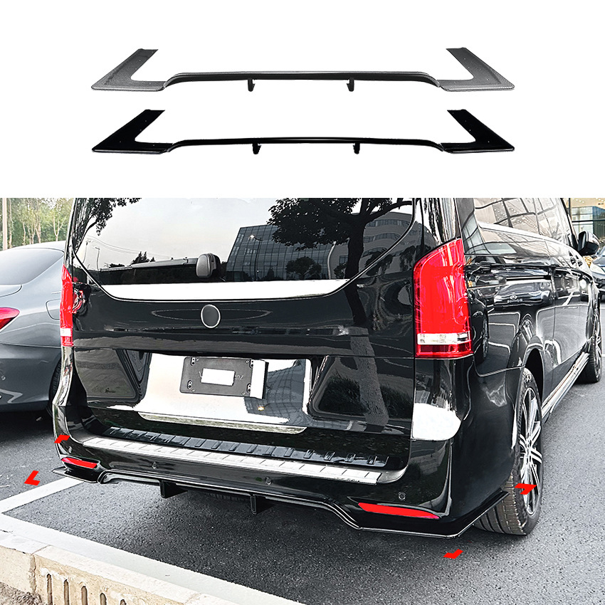 Piano Black Carbon Fiber Rear Bumper Diffuser Lip Spoiler for Mercedes-Benz V-Class V260 W447 AMG Line 2018-2023