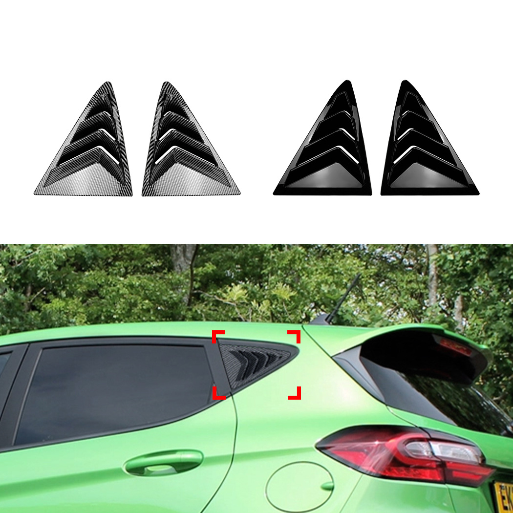Piano Black Carbon Fiber Rear Window Louvers Side Vent Quarter Window Scoop Covers for Ford Fiesta MK8 (2018+)